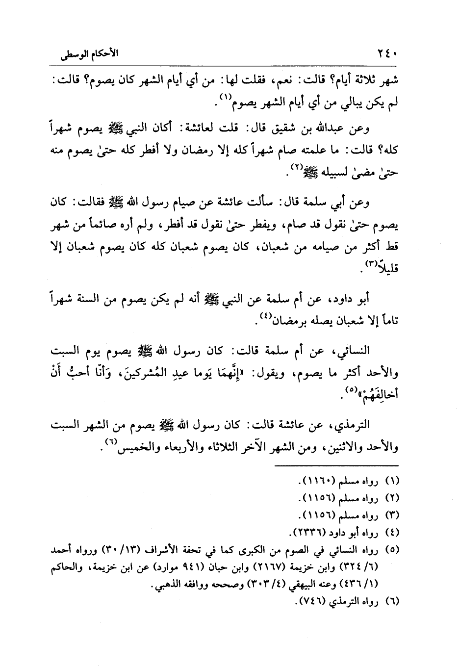 (¬5) رواه النسائي في الصوم من الكبرى كما في تحفة الأشراف (13/ 30) ورواه أحمد (6/ 324) وابن خزيمة (2167) وابن حبان (941 موارد) عن ابن خزيمة، والحاكم (1/ 436) وعنه البيهقي (4/ 303) وصححه ووافقه الذهبي.
