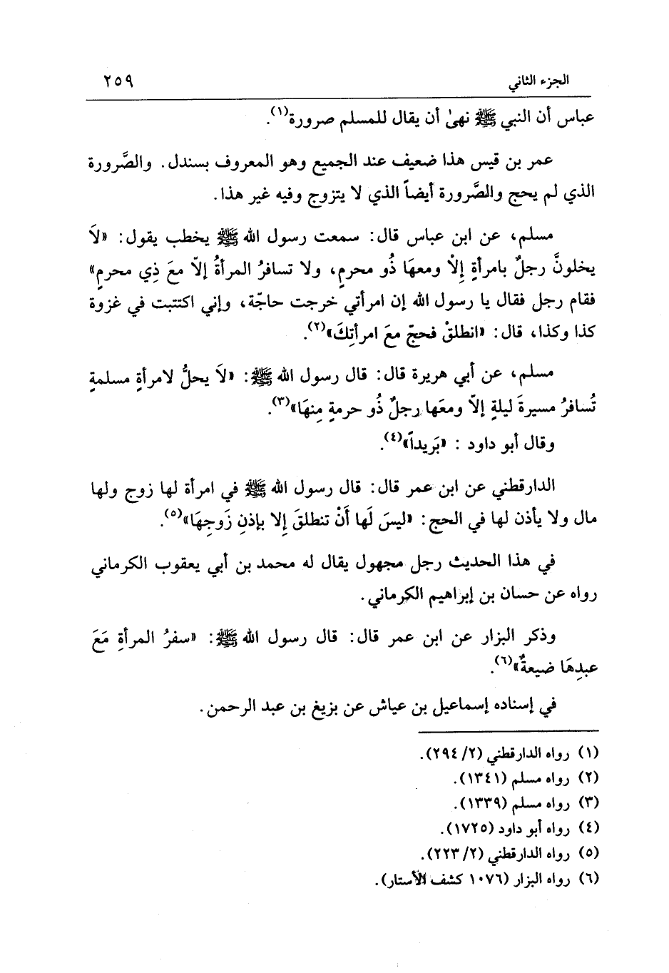الدارقطني عن ابن عمر قال: قال رسول الله - صلى الله عليه وسلم - في امرأة لها زوج ولها مال ولا يأذن لها في الحج: "ليسَ لَها أَنْ تنطلقَ إِلا بإذنِ زَوجِهَا" (¬5).