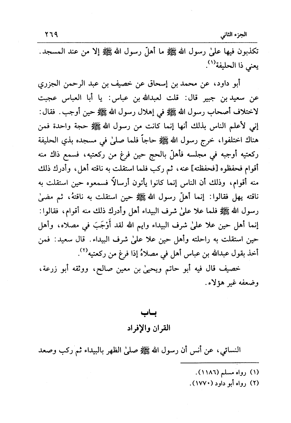 أبو داود، عن محمد بن إسحاق عن خصيف بن عبد الرحمن الجزري عن سعيد بن جبير قال: قلت لعبد الله بن عباس: يا أبا العباس عجبت