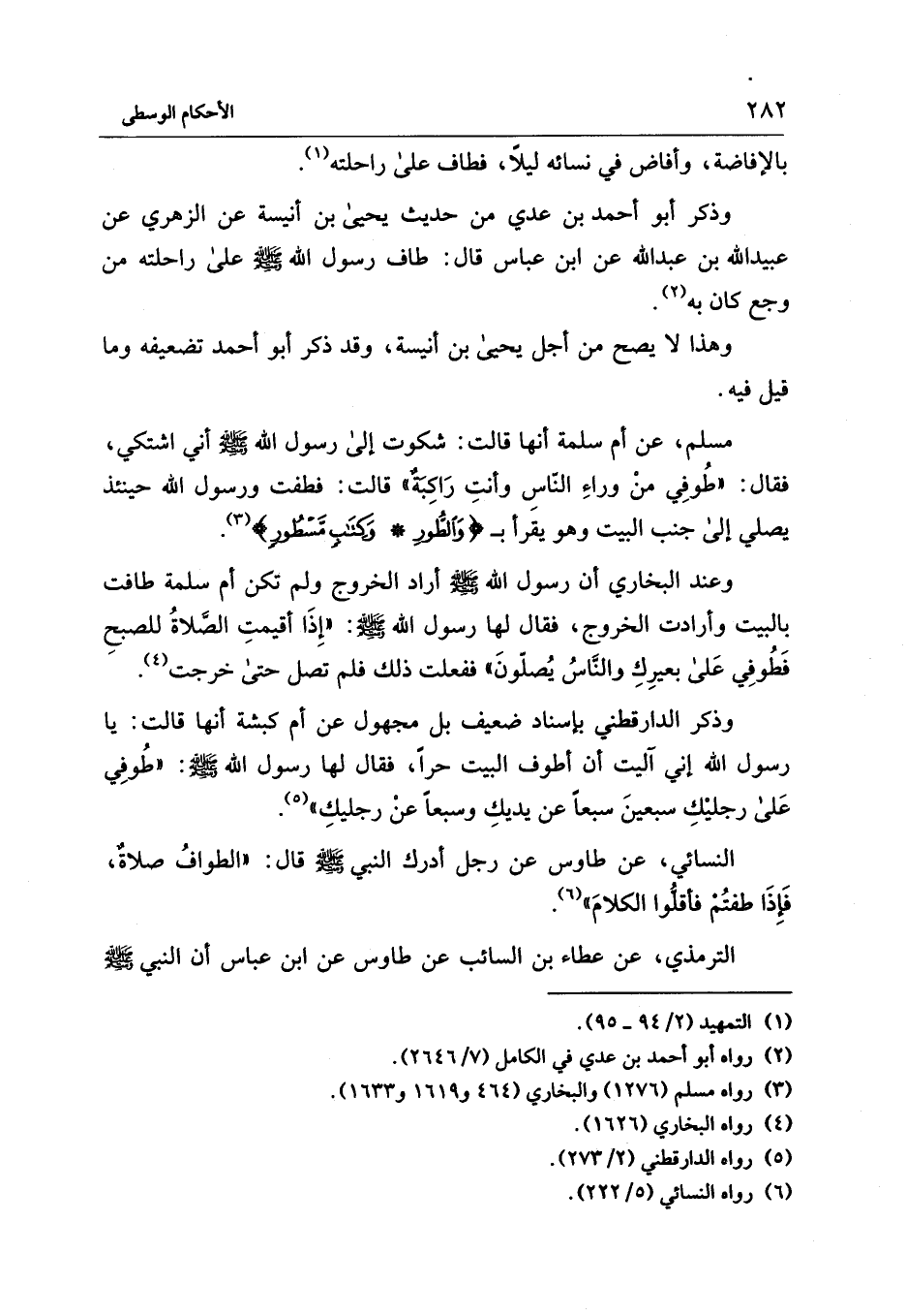 وذكر أبو أحمد بن عدي من حديث يحيى بن أنيسة عن الزهري عن عبيد الله بن عبد الله عن ابن عباس قال: طاف رسول الله - صلى الله عليه وسلم - على راحلته من وجع كان به (¬2).