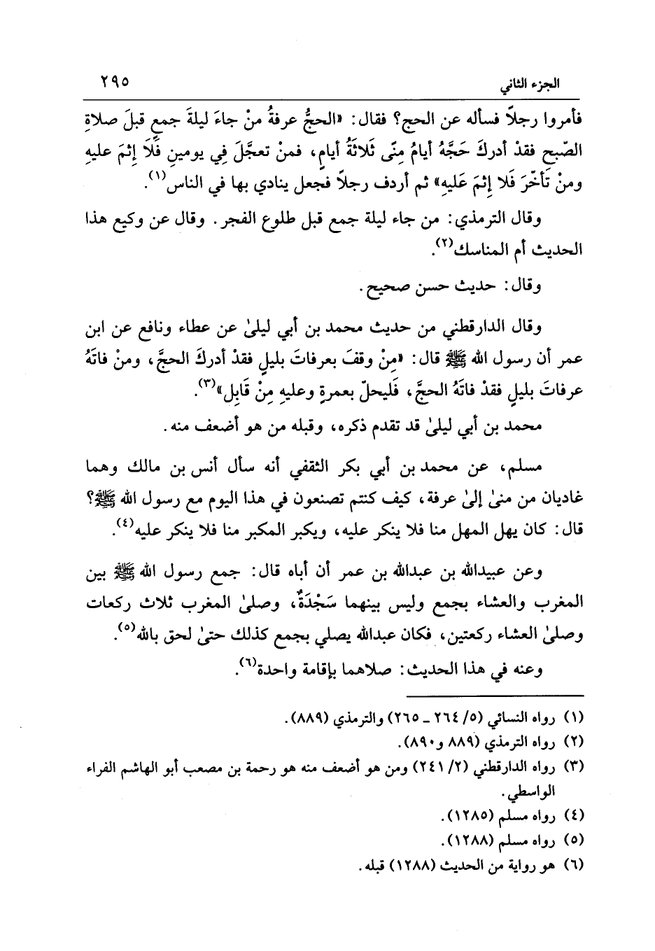 وقال الترمذي: من جاء ليلة جمع قبل طلوع الفجر. وقال عن وكيع هذا الحديث أم المناسك (¬2).