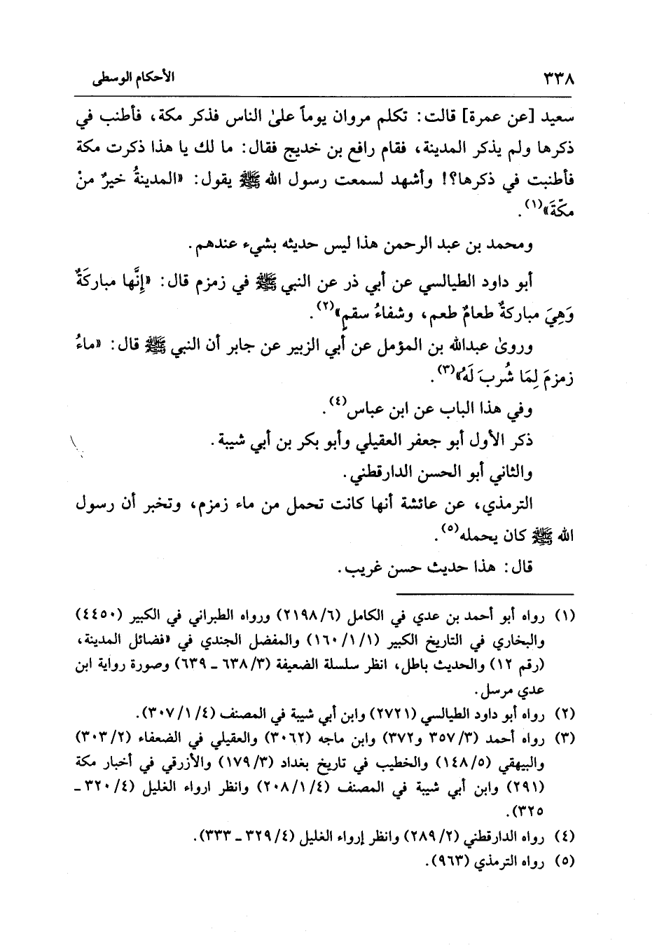 (¬3) رواه أحمد (3/ 357 و 372) وابن ماجه (3062) والعقيلي في الضعفاء (2/ 303) والبيهقي (5/ 148) والخطيب في تاريخ بغداد (3/ 179) والأزرقي في أخبار مكة (291) وابن أبي شيبة في المصنف (4/ 1/ 208) وانظر إرواء الغليل (4/ 320 - 325).