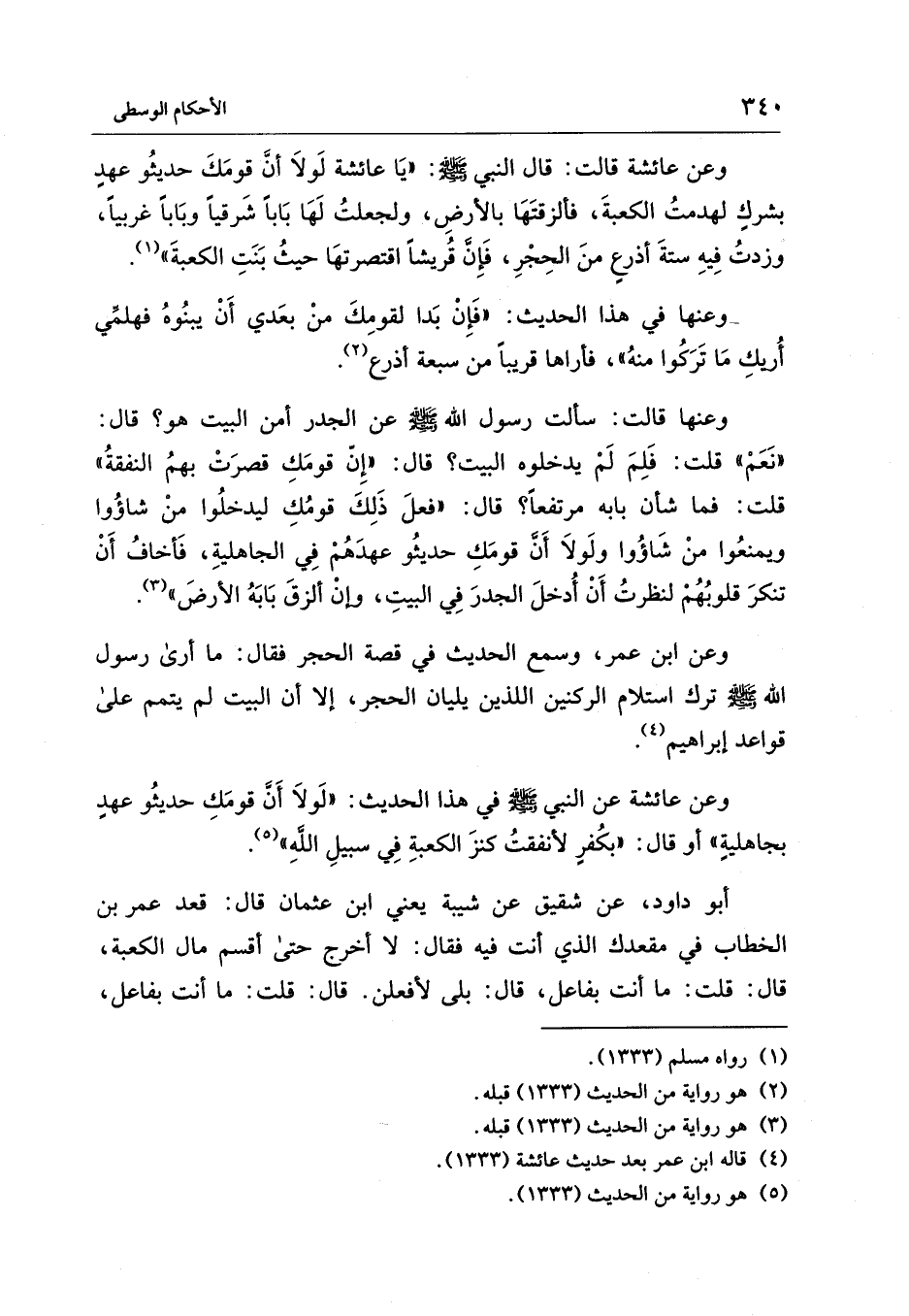 وعن ابن عمر، وسمع الحديث في قصة الحجر فقال: ما أرى رسول الله - صلى الله عليه وسلم - ترك استلام الركنين اللذين يليان الحجر، إلا أن البيت لم يتمم على قواعد إبراهيم (¬4).