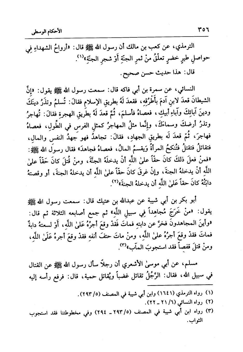 النسائي، عن سمرة بن أبي فاكه قال: سمعت رسول الله - صلى الله عليه وسلم - يقول: "إِنَّ الشيطانَ قعدَ لابنِ آدمَ بأَطْرُقِهِ، فقعدَ لَهُ بطريقِ الإسلامِ فقالَ: تُسلمُ وتذَرُ دينَكَ ودينَ آبائِكَ وآباءِ أبيكِ، فعصاهُ فأسلمَ، ثُمَّ قعدَ لَهُ بطريقِ الهجرة فقالَ: تُهاجرُ وتذرُ أرضكَ وسماءَكَ، وإِنَّما مثلُ المهاجرُ كمثلِ الفرسِ في الطِّولِ، فعصاهُ فهاجرَ، ثُمّ قعدَ لَه بطريقِ الجهادِ، فقالَ: تجاهدُ فهو جهدُ النفس والمالِ، فتقاتلُ فتقتلُ فتُنكحُ المرأةُ وَيقسمُ المالُ، فعصاهُ فجاهدَ" فقال رسول الله - صلى الله عليه وسلم -: "فمنْ فعلَ ذلكَ كانَ حقًّا على الله أنْ يدخلَهُ الجنَّةَ، ومنْ قُتلَ كانَ حَقًّا على اللهِ أنْ يدخلهُ الجنةَ، وإن غرقَ كانَ حقًّا على اللهِ أن يدخلهُ الجنةَ، أو وقصتهُ دابتُهُ كانَ حقًا عَلى اللهِ أن يدخلهُ الجنةَ" (¬2).