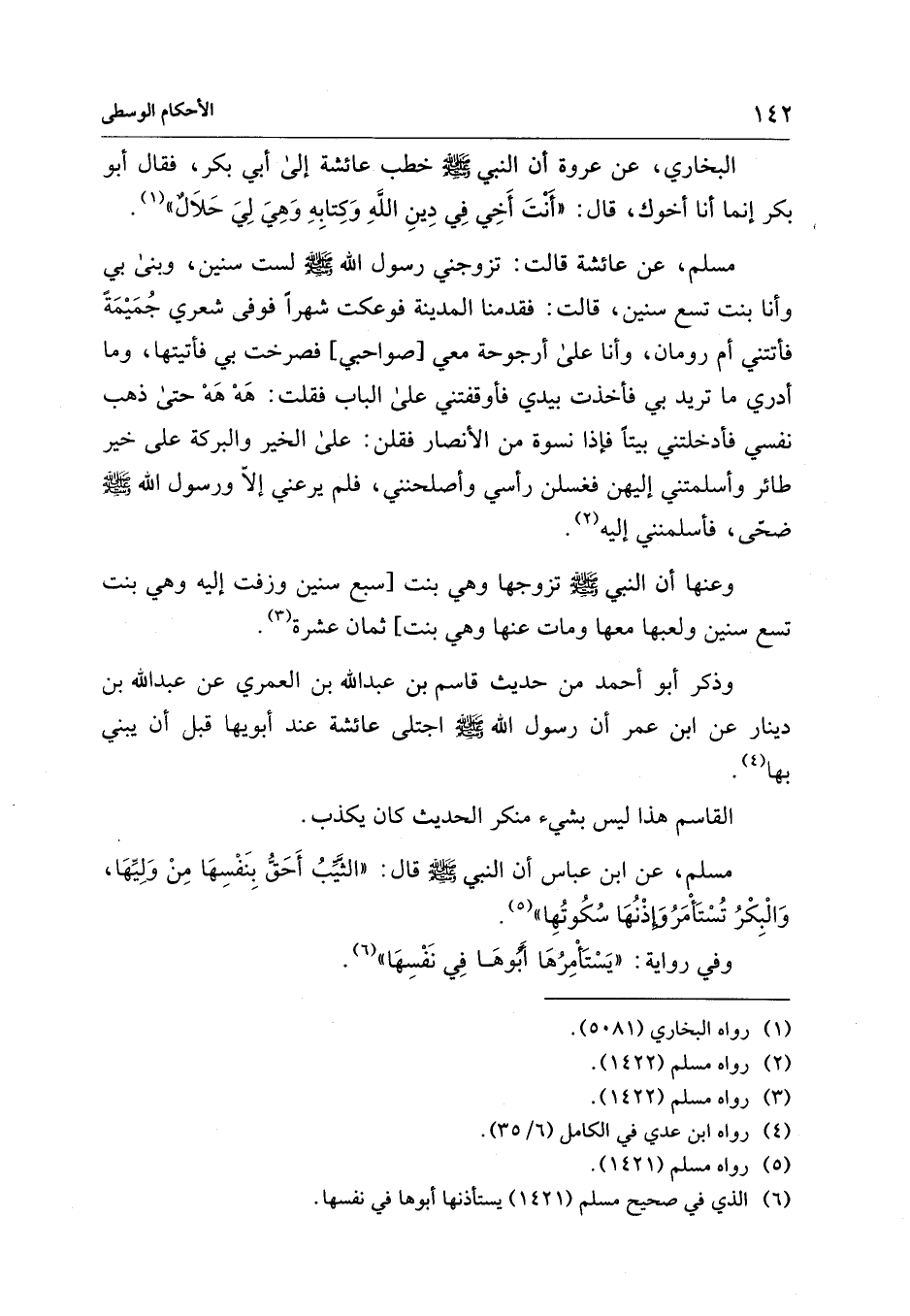 البخاري، عن عروة أن النبي - صلى الله عليه وسلم - خطب عائشة إلى أبي بكر، فقال أبو بكر إنما أنا أخوك، قال: "أَنْتَ أَخِي في دِينِ اللهِ وَكِتابِهِ وَهِيَ لِيَ حَلَالٌ" (¬1).