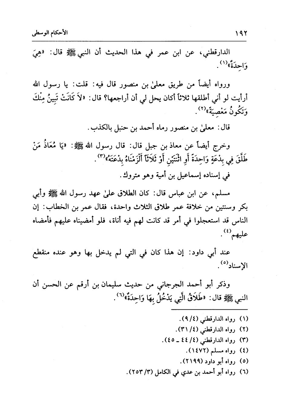 الدارقطني، عن ابن عمر في هذا الحديث أن النبي - صلى الله عليه وسلم - قال: "هِيَ وَاحِدَةٌ" (¬1).