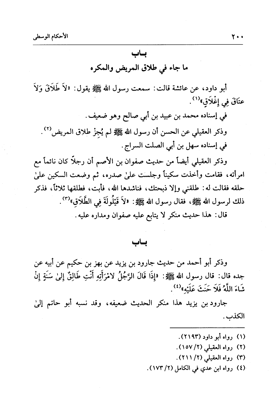 أبو داود، عن عائشة قالت: سمعت رسول الله - صلى الله عليه وسلم - يقول: "لاَ طَلاَقَ وَلاَ عتَاقَ فِي إِغْلاَقٍ" (¬1).