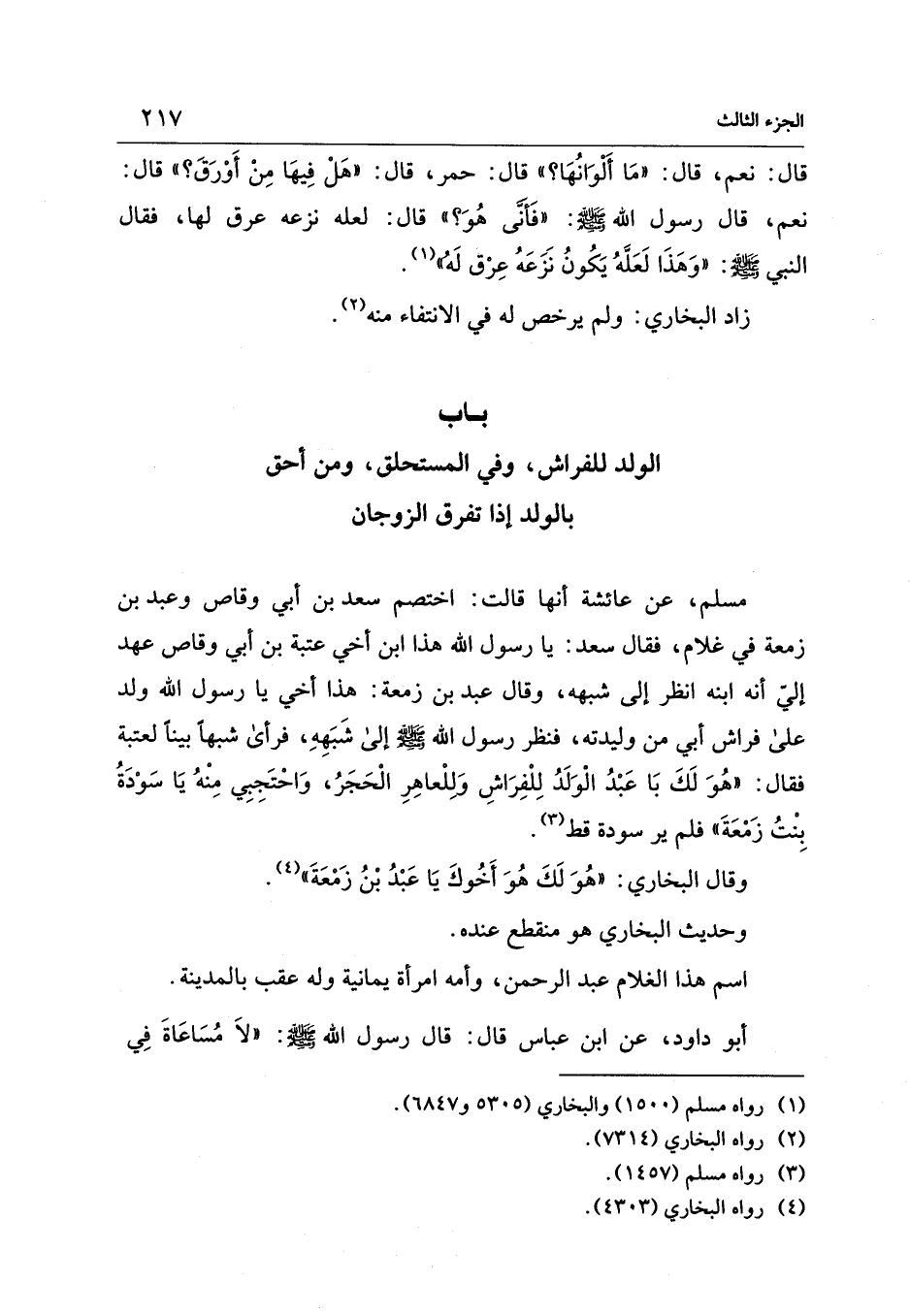 وقال البخاري: "هُوَ لَكَ هُوَ أَخُوكَ يَا عَبْدُ بْنُ زَمْعَةَ" (¬4).
