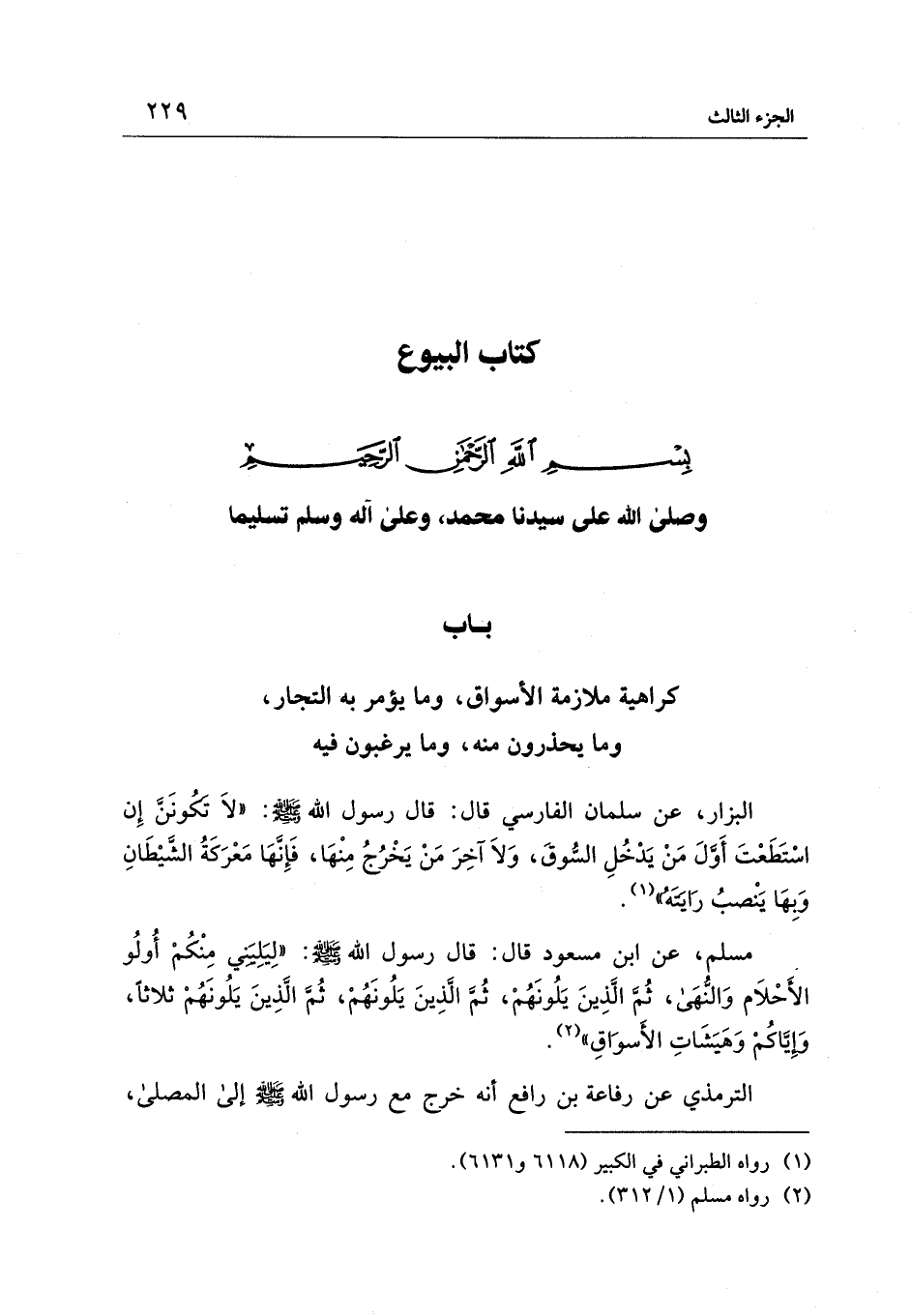 باب كراهية ملازمة الأسواق، وما يؤمر به التجار، وما يحذرون منه، وما يرغبون فيه