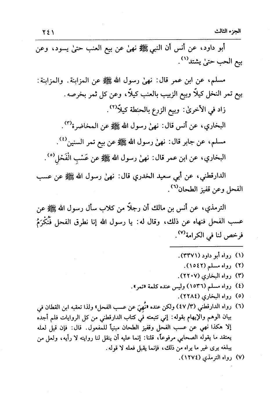 مسلم، عن جابر قال: نهى رسول الله - صلى الله عليه وسلم - عن بيع تمر السنين (¬4).