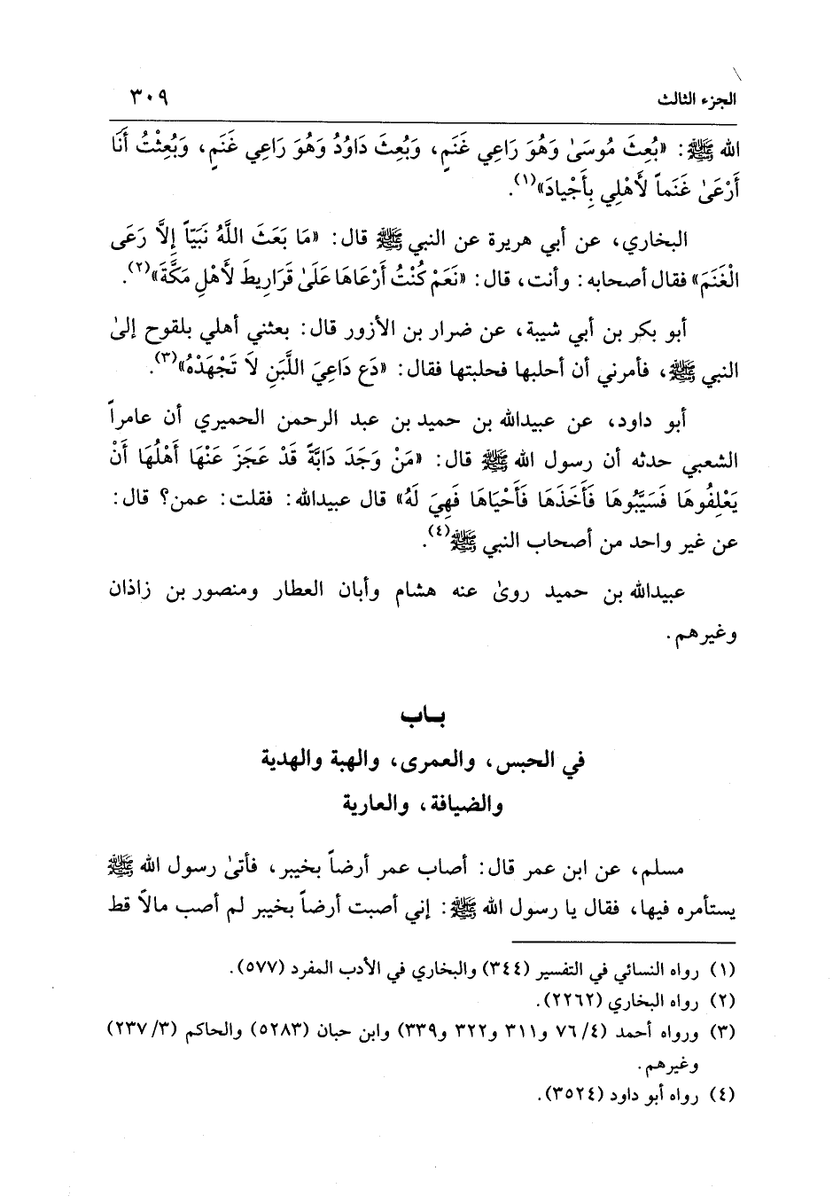 باب في الحبس، والعمرى، والهبة والهدية والضيافة، والعارية