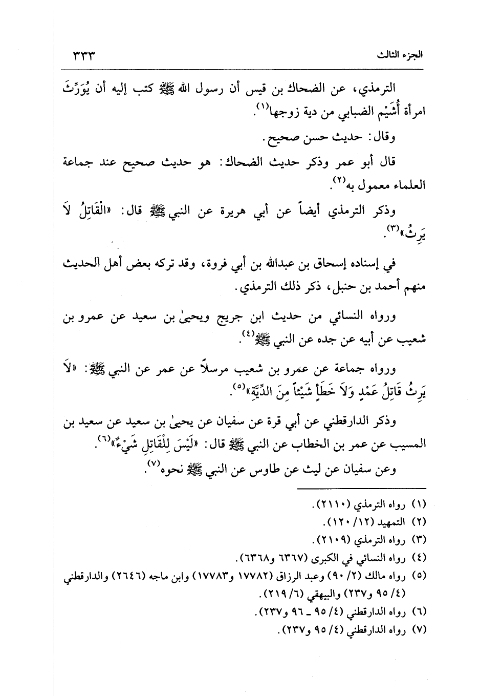 وذكر الترمذي أيضًا عن أبي هريرة عن النبي - صلى الله عليه وسلم - قال: "الْقَاتِلُ لاَ يَرِثُ" (¬3).