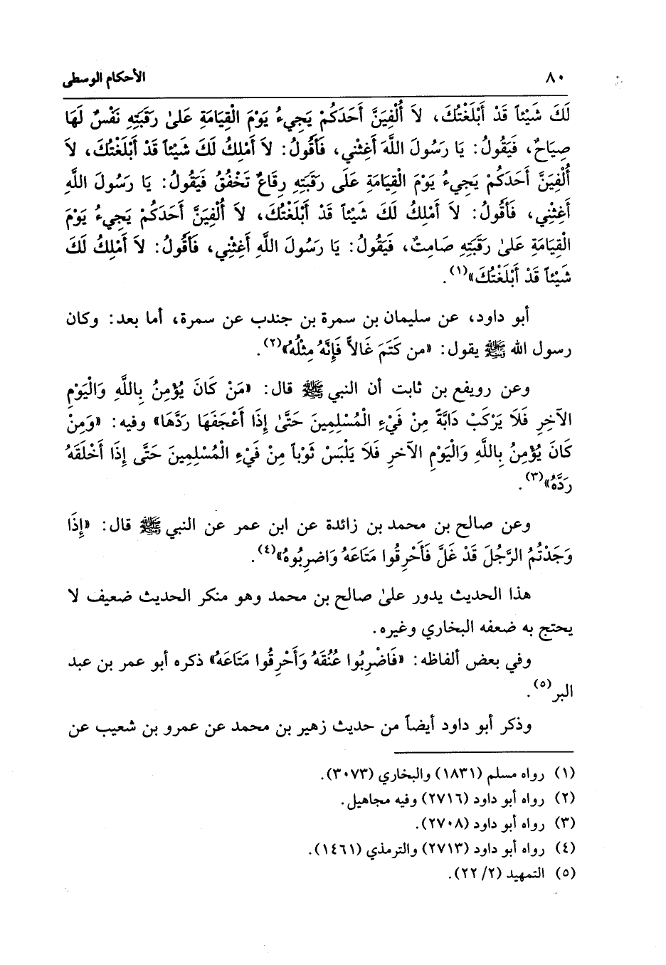 لَكَ شَيْئًا قَدْ أَبْلَغْتكَ، لاَ أُلْفِيَنَّ أَحَدَكُمْ يَجِيءُ يَوْمَ القِيَامَةِ عَلى رقَبَتِهِ نَفْسٌ لَهَا صِيَاحٌ، فَيَقُولُ: يَا رَسُولَ اللهَ أَغِثْني، فَأَقُولُ: لاَ أَمْلِكُ لَكَ شَيْئًا قَدْ أَبلَغتُكَ، لاَ أُلْفِيَنَّ أَحَدَكُمْ يَجِيءُ يَوْمَ الْقِيَامَةِ عَلَى رَقَبَتِهِ رِقَاعٌ تَخْفُقُ فَيَقُولُ: يَا رَسُولَ اللهِ أَغِثْنِي، فَأَقُولُ: لاَ أَمْلِكُ لَكَ شَيْئًا قَدْ أَبْلَغتكَ، لاَ أُلْفِيَن أَحَدَكُمْ يَجِيءُ يَوْمَ الْقِيَامَةِ عَلى رَقَبَتِهِ صَامِتٌ، فَتقُولُ: يَا رَسُولَ اللهِ أَغِثتِي، فَأَقُولُ: لاَ أَمْلِكُ لَكَ شَيْئًا قَدْ أَبْلَغْتُكَ" (¬1).