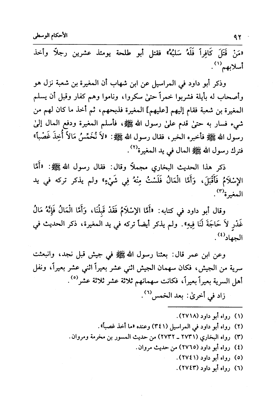 وقال أبو داود في كتابه: "أَمَّا الإسْلاَمُ فَقَدْ قَبِلْنَا، وَأمَّا الْمَالُ فَإِنَّهُ مَالُ غَدْرٍ لاَ حَاجَةَ لَنَا فِيهِ". ولم يذكر أيضًا تركه في يد المغيرة، ذكر الحديث في الجهاد (¬4).
