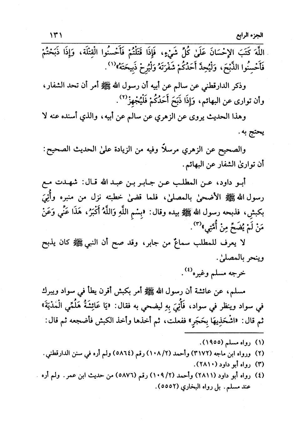 (¬4) رواه أبو داود (2811) وأحمد (2/ 109) رقم (5876) من حديث ابن عمر. ولم أره عند مسلم. بل رواه البخاري (5552).