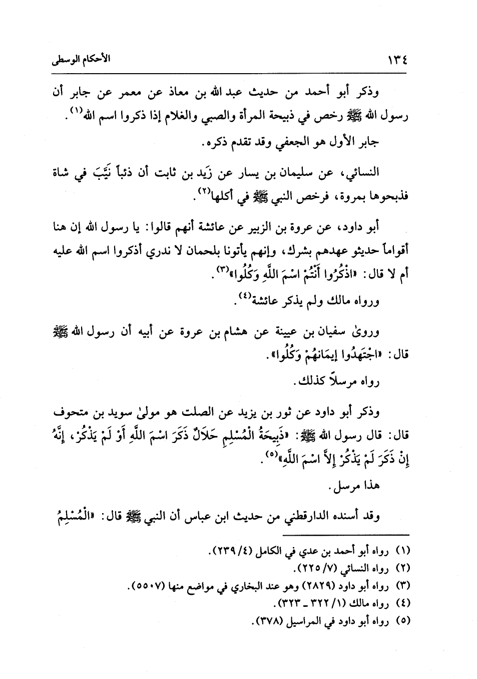 أبو داود، عن عروة بن الزبير عن عائشة أنهم قالوا: يا رسول الله إن هنا أقوامًا حديثو عهدهم بشرك، وإنهم يأتونا بلحمان لا ندري أذكروا اسم الله عليه أم لا قال: "اذْكُرُوا أَنْتُمْ اسْمَ اللهِ وَكُلُوا" (¬3).