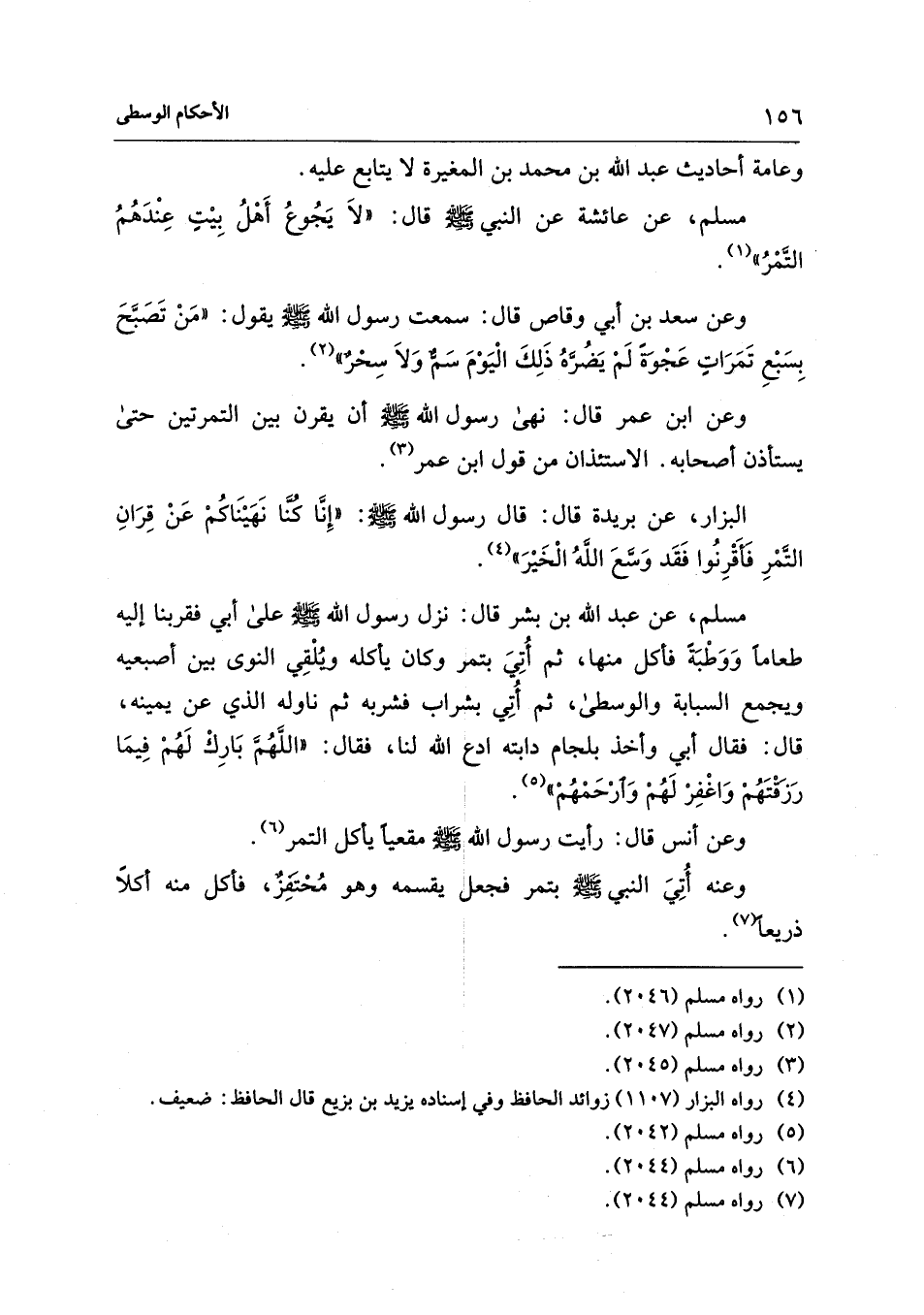 مسلم، عن عبد الله بن بشر قال: نزل رسول الله - صلى الله عليه وسلم - على أبي فقربنا إليه طعامًا وَوَطْبَةً فأكل منها، ثم أُتِيَ بتمر وكان يأكله ويُلْقِي النوى بين أصبعيه ويجمع السبابة والوسطى، ثم أُتِي بشراب فشربه ثم ناوله الذي عن يمينه، قال: فقال أبي وأخذ بلجام دابته ادع الله لنا، فقال: "اللَّهُمَّ بَارِكْ لَهُمْ فِيمَا رَزَقْتَهُمْ وَاغْفِرْ لَهُمْ وَأرْحَمْهُمْ" (¬5).