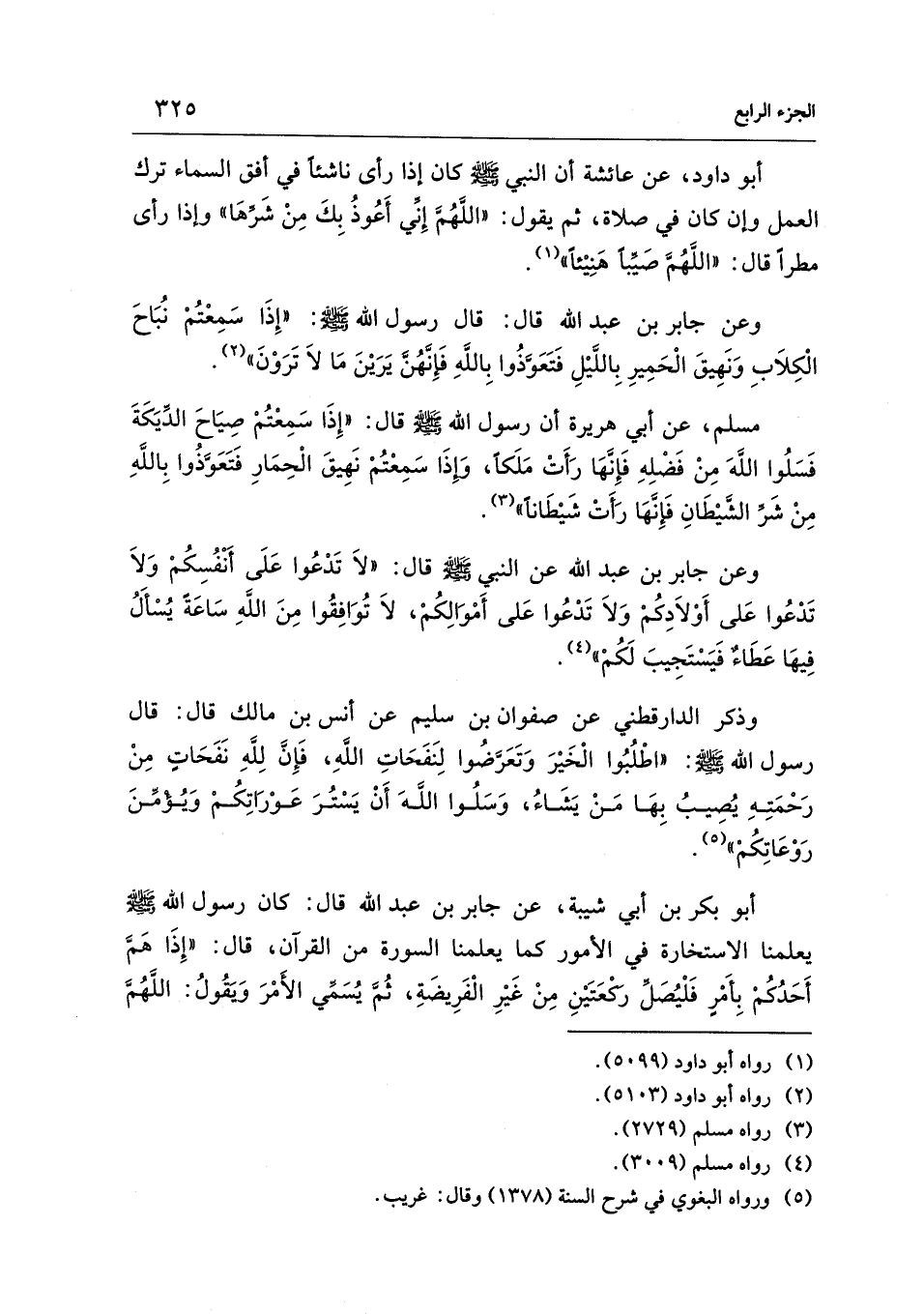 وعن جابر بن عبد الله عن النبي - صلى الله عليه وسلم - قال: "لاَ تَدْعُوا عَلَى أَنْفُسِكُمْ وَلاَ تَدْعُوا عَلى أَوْلاَدِكُمْ وَلاَ تَدْعُوا عَلى أَمْوَالِكُمْ، لاَ تُوَافِقُوا مِنَ اللهِ سَاعَةً يُسْأَلُ فِيهَا عَطَاءٌ فَيَسْتَجِيبَ لَكُمْ" (¬4).