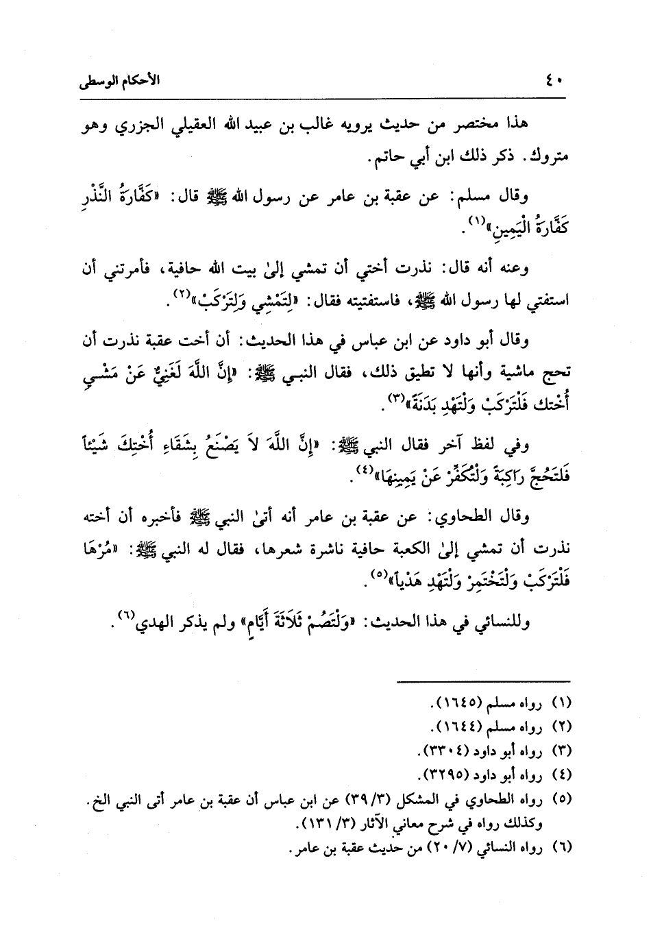 (¬5) رواه الطحاوي في المشكل (3/ 39) عن ابن عباس أن عقبة بن عامر أتى النبي الخ. وكذلك رواه في شرح معاني الآثار (3/ 131).
