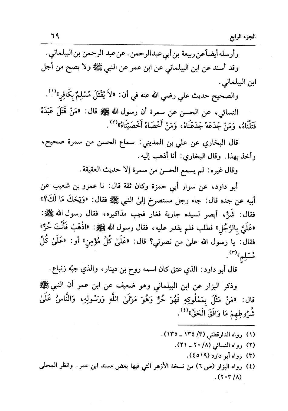 (¬4) رواه البزار (ص 6) من نسخة الأزهر التي فيها بعض مسند ابن عمر. وانظر المحلى (8/ 203).