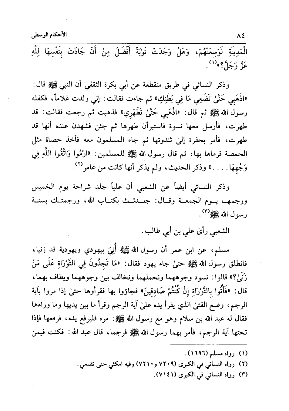 مسلم، عن ابن عمر أن رسول الله - صلى الله عليه وسلم - أُتِيَ بيهودي ويهودية قد زنيا، فانطلق رسول الله - صلى الله عليه وسلم - حتى جاء يهود فقال: "مَا تَجِدُونَ فِي التَّوْرَاةِ عَلَى مَنْ زَنَى؟ " قالوا: نسود وجوههما ونحملهما ونخالف بين وجوههما ويطاف بهما، قال: "فَأْتُوا بِالتَّوْراةِ إِنْ كُنْتُمْ صَادِقِينَ" فجاؤوا بها فقرأوها حتى إذا مروا بآية الرجم، وضع الفتى الذي يقرأ يده على آية الرجم وقرأ ما بين يديها وما وراءها فقال له عبد الله بن سلام وهو مع رسول الله - صلى الله عليه وسلم -: مره فليرفع يده، فرفعها فإذا تحتها آية الرجم، فأمر بهما رسول الله - صلى الله عليه وسلم - فرجما، قال عبد الله: فكنت فيمن
