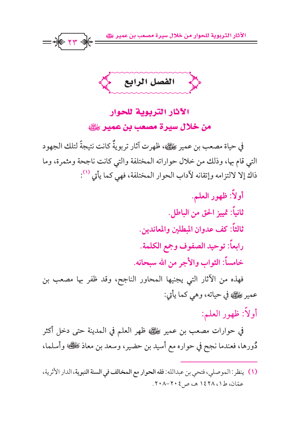 الفصل الرابع: الآثار التربوية للحوار من خلال سيرة مصعب بن عمير - رضي الله عنه -: