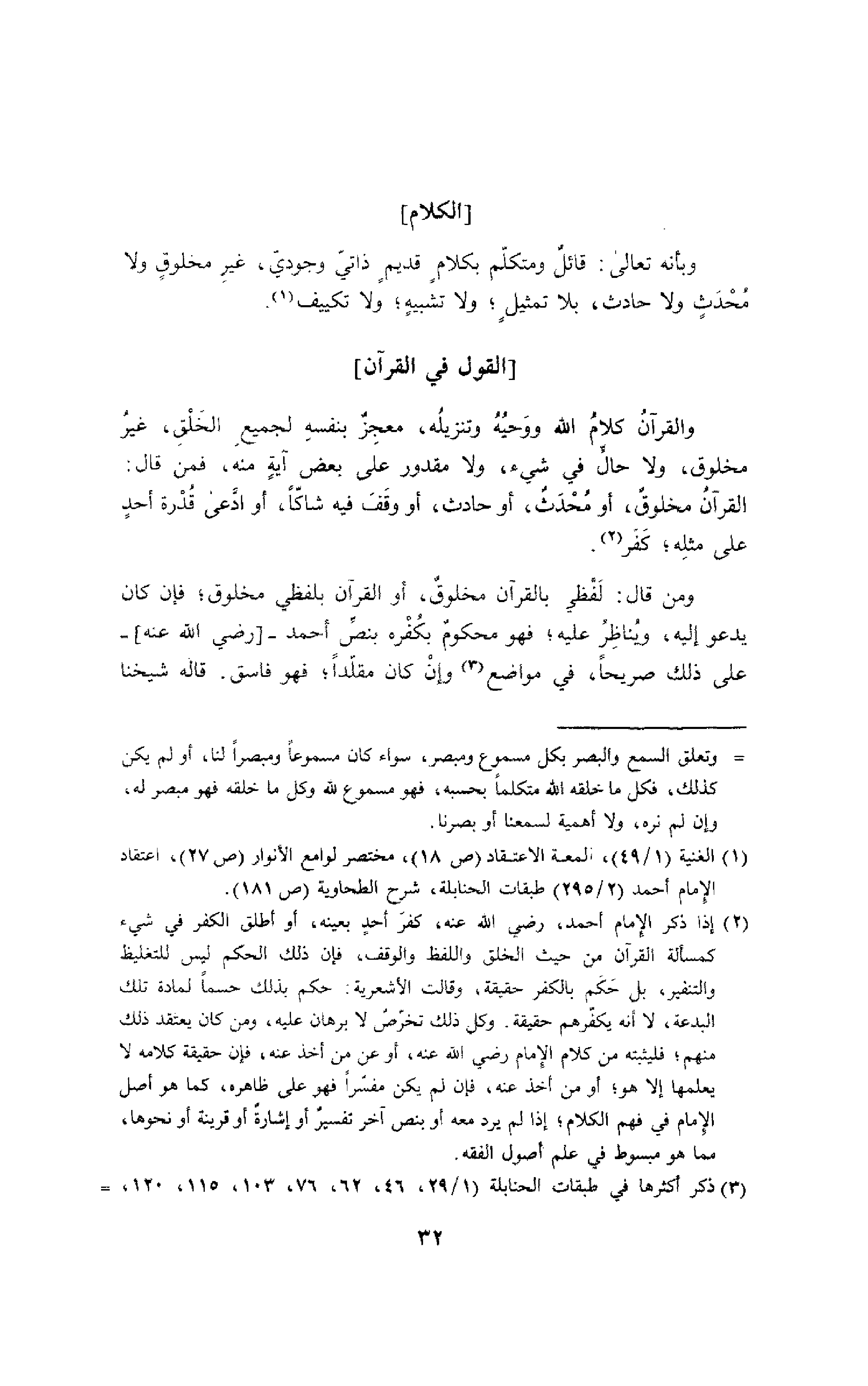 1 الغنية: "49/1"، لعمة الاعتقاد: "صـ 18"، مختصر لوامع الأنوار: "صـ 27"، اعتقاد الإمام أحمد: "295/2", طبقات الحنابلة، شرح الطحاوية: "صـ 181".