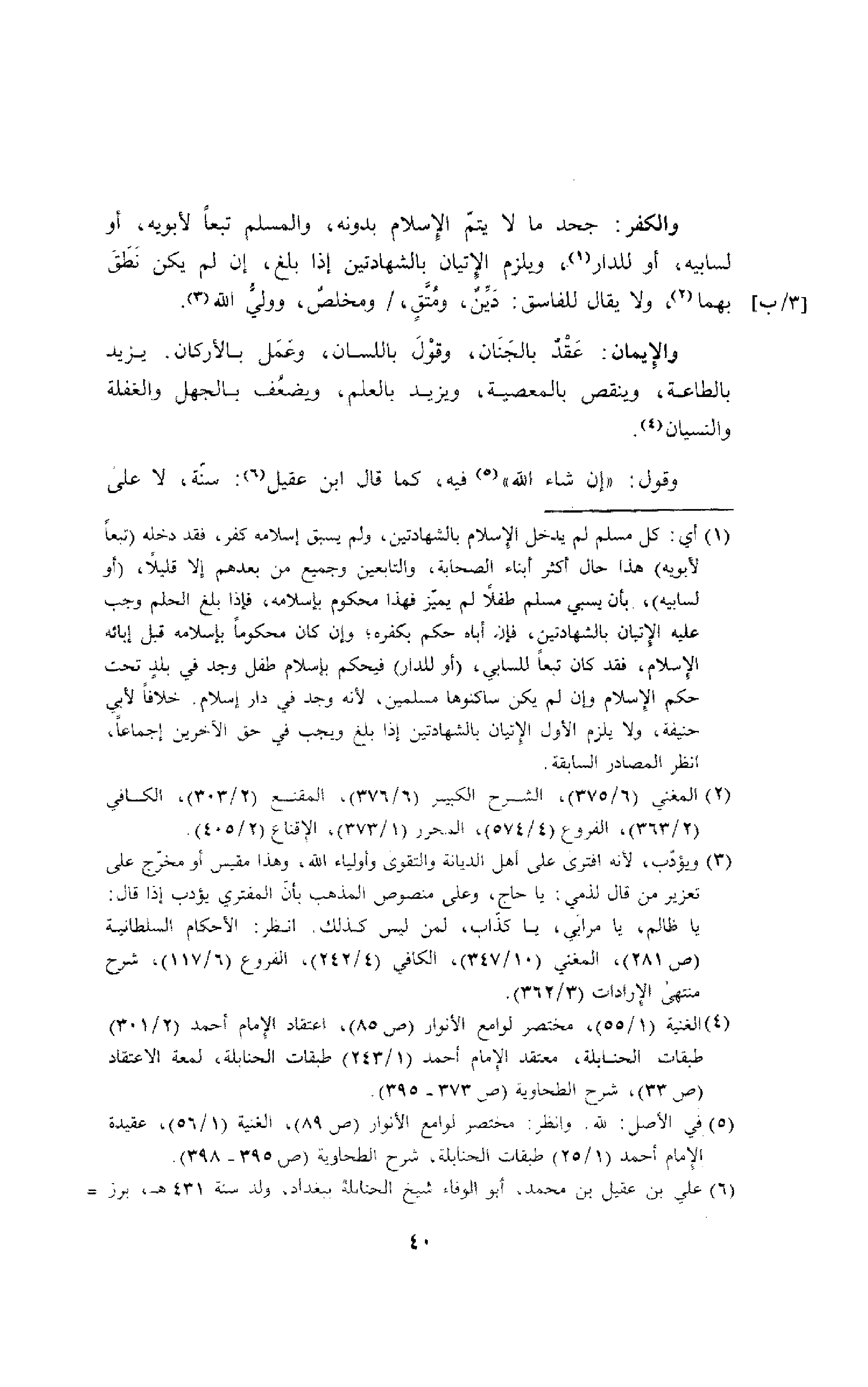 4 الغنية: "55/1"، مختصر لوامع الأنوار: "صـ 85"، اعتقاد الإمام أحمد: "301/2", طبقات الحنابلة، معتقد الإمام أحمد: "1/ 243", طبقات الحنابلة, لمعة الاعتقاد: "صـ 33"، شرح الطحاوية: "صـ 373-395".