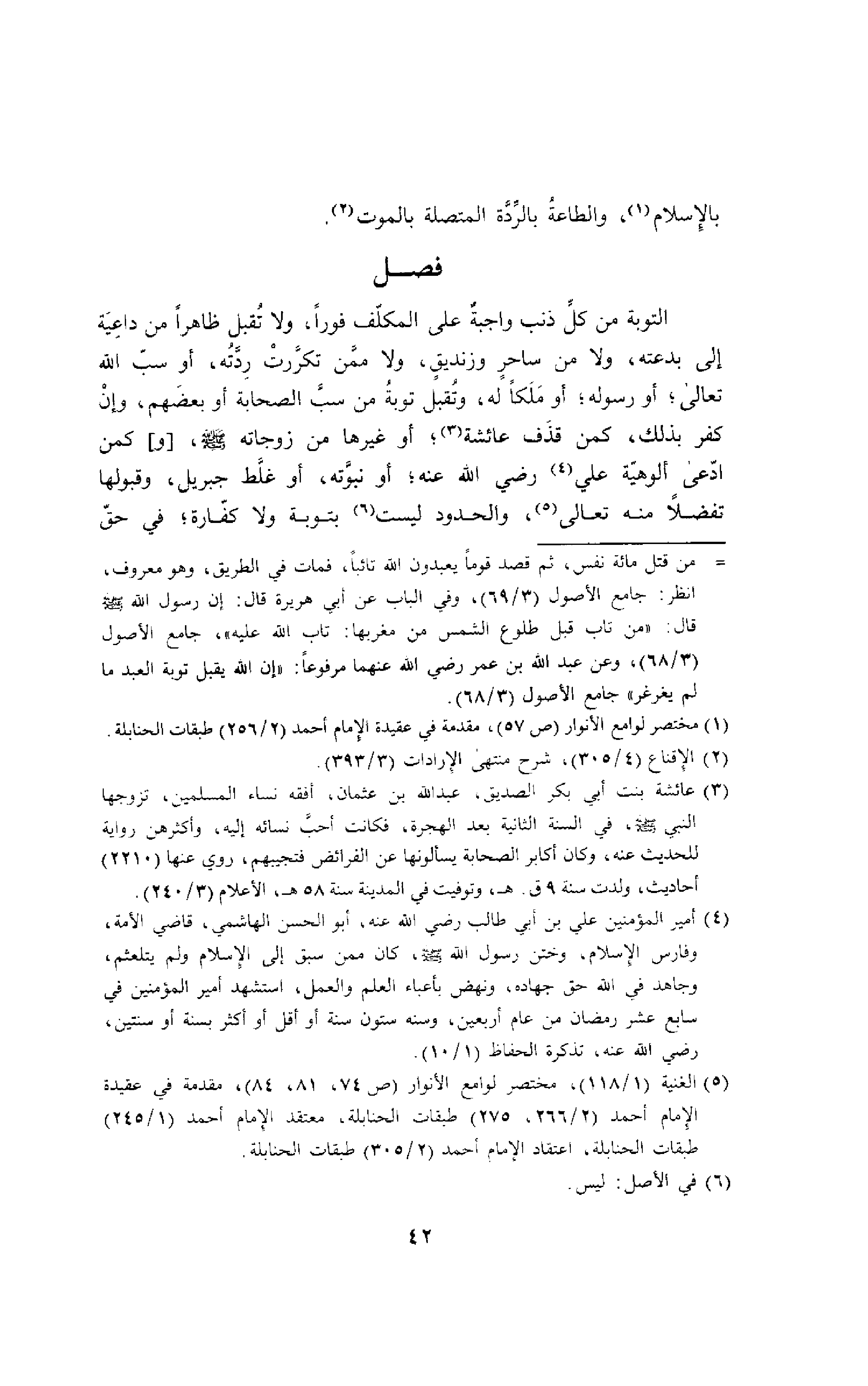 1 مختصر لوامع الأنوار: "صـ 57"، مقدمة في عقيدة الإمام أحمد: "256/2", طبقات الحنابلة.