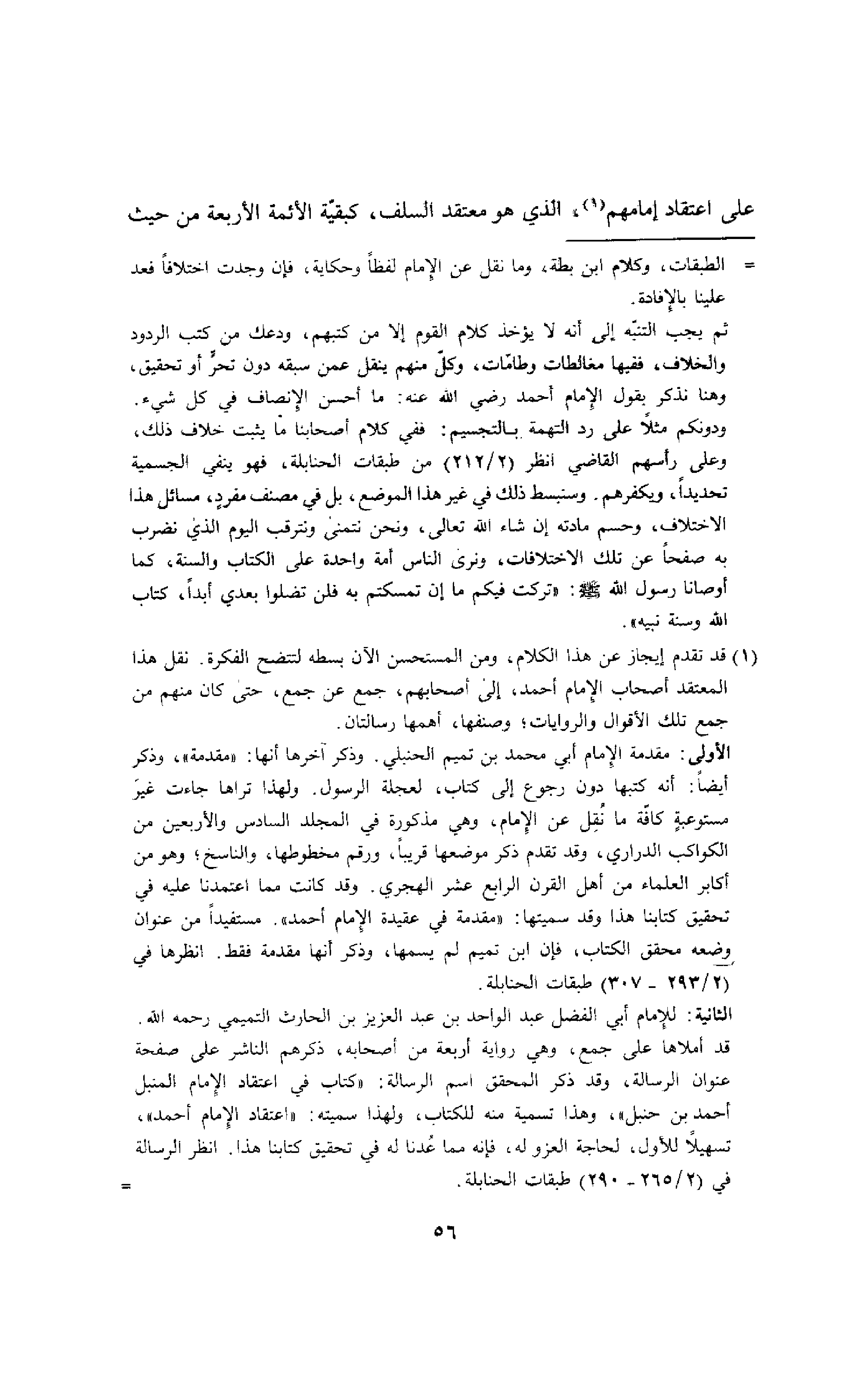 = الطبقات، وكلام ابن بطة، وما نقل عن الإمام لفظاً وحكاية، فإن وجدت اختلافاً فعد علينا بالإفادة.