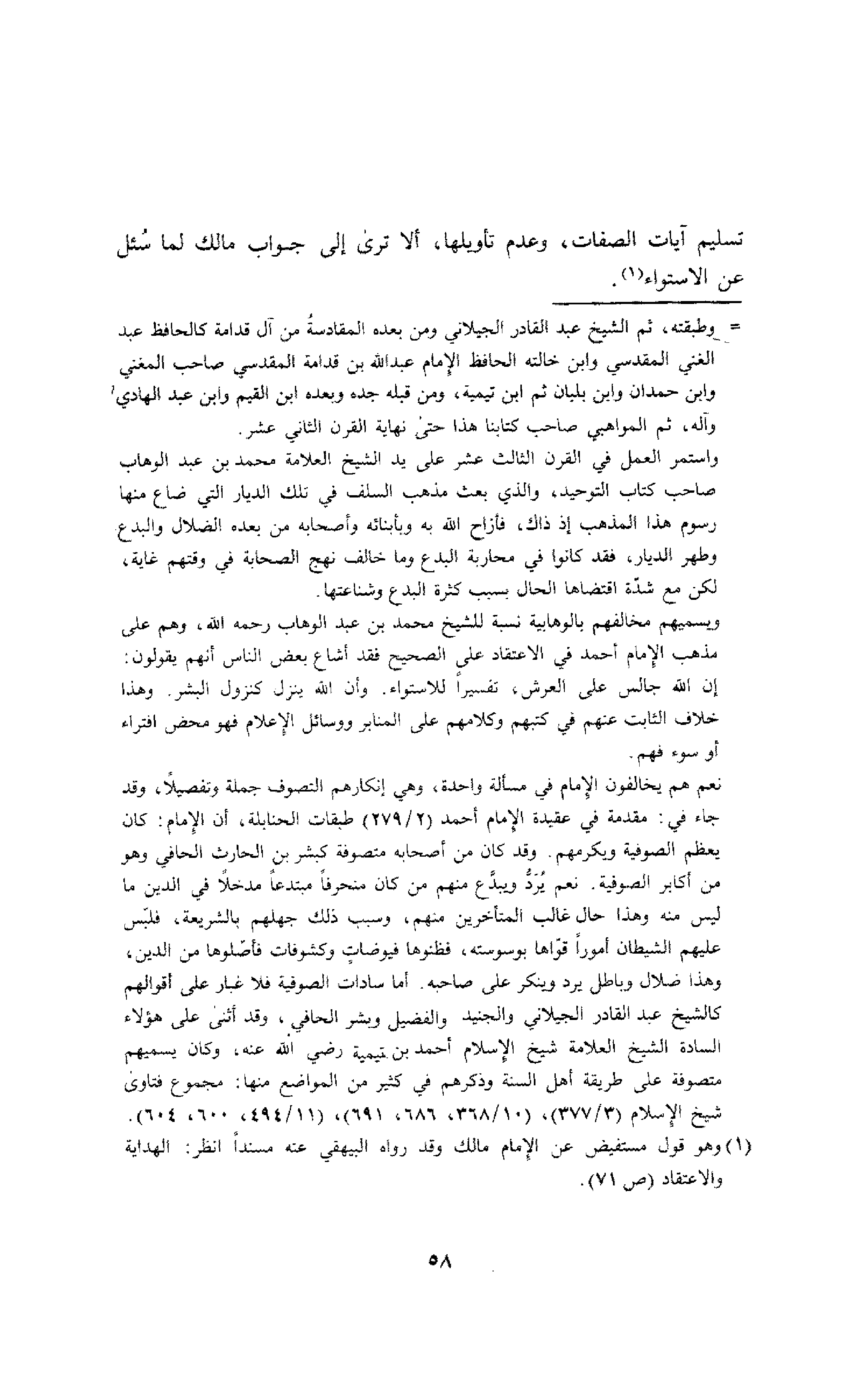 تسليم آيات الصفات، وعدم تأويلها، ألا ترى إلى جواب مالك, لما سئل عن الاستواء