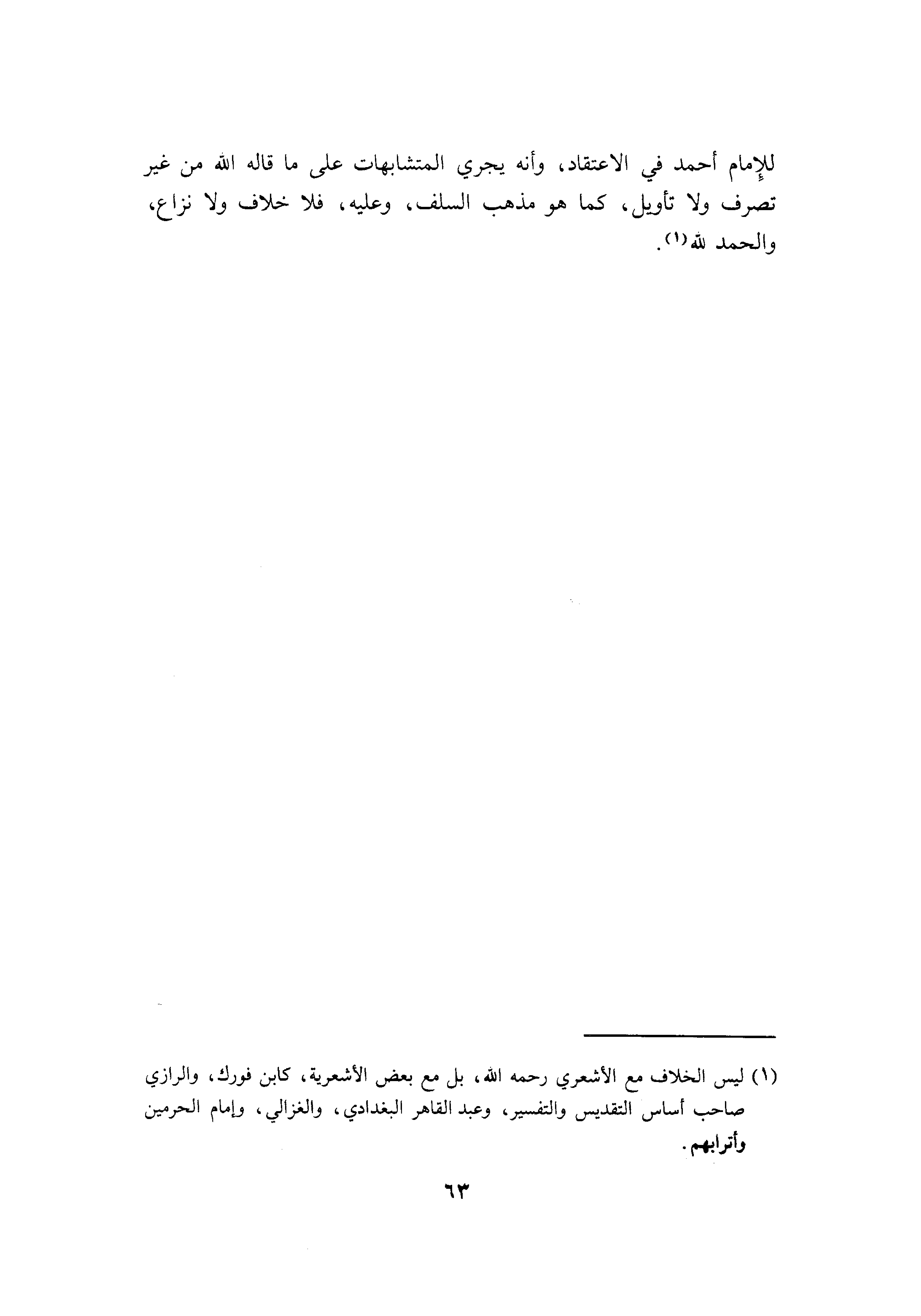 1 ليس الخلاف مع الأشعري رحمه الله، بل مع بعض الأشعرية، كابن فورك، والرازي صاحب: "أساس التقديس والتفسير"، وعبد الظاهر البغدادي، والغزالي، وإمام الحرمين, وأترابهم.