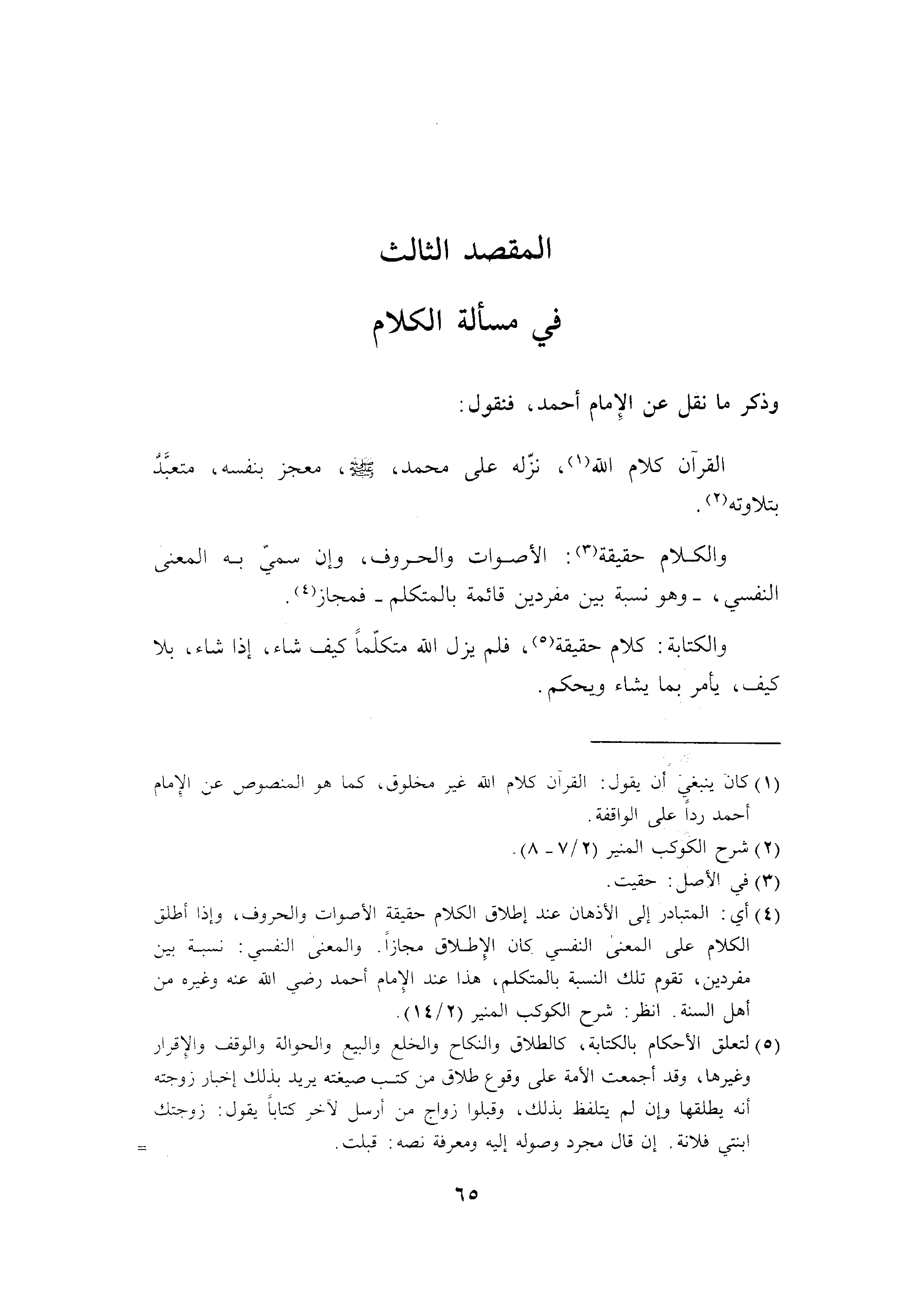المقصد الثالث: في مسألة الكلام: وذكر ما نقل عن الإمام أحمد،