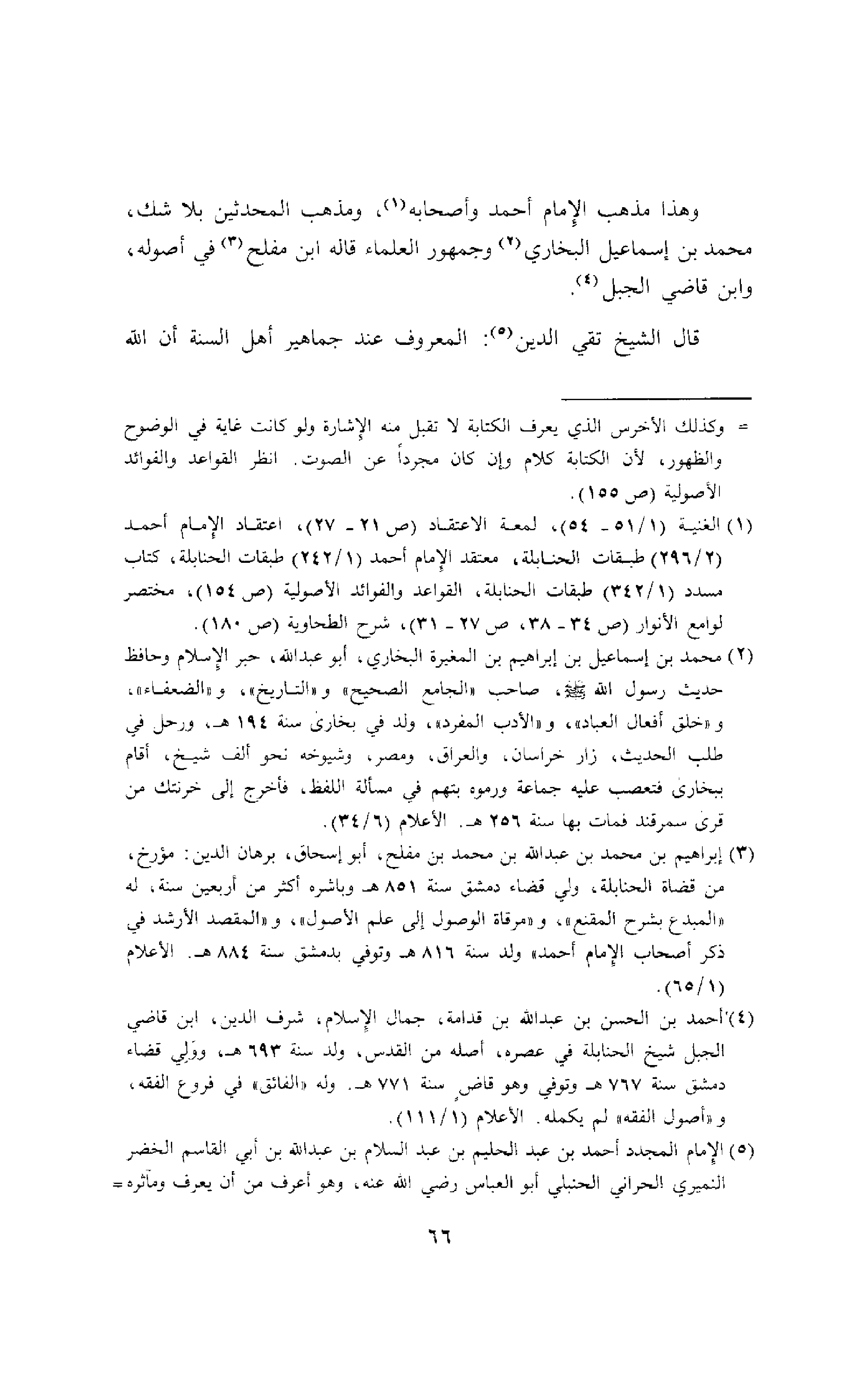 1 الغنية: "51/1-54"، لمعة الاعتقاد: "صـ 21/ 27"، اعتقاد الإمام أحمد: "296/2", طبقات الحنابلة، معتقد الإمام أحمد: "242/1", طبقات الحنابلة، كتاب مسدد: "342/1", طبقات الحنابلة، القواعد والفوائد الأصولية: "صـ 154"، مختصر لوامع الأنوار: "صـ 34-38"، "صـ 27-31"، شرح الطحاوية: "صـ 180".