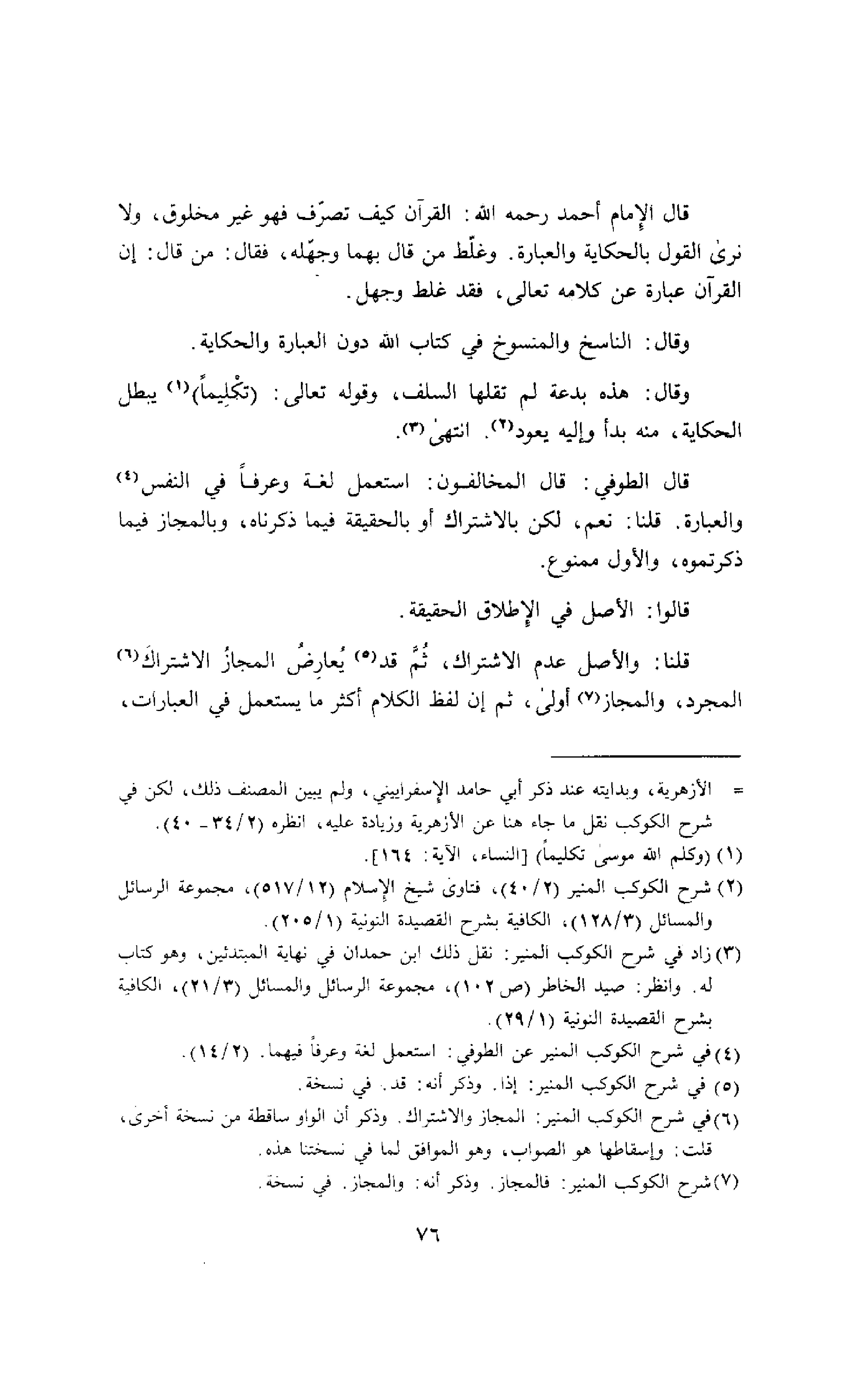 3 زاد في: شرح الكوكب المنير: نقل ذلك ابن حمدان في نهاية المبتدئين، وهو كتاب له, انظر: صيد الخاطر: "صـ 102"، مجموعة الرسائل والمسائل: "21/3"، الكافية بشرح القصيدة النونية: "29/1".