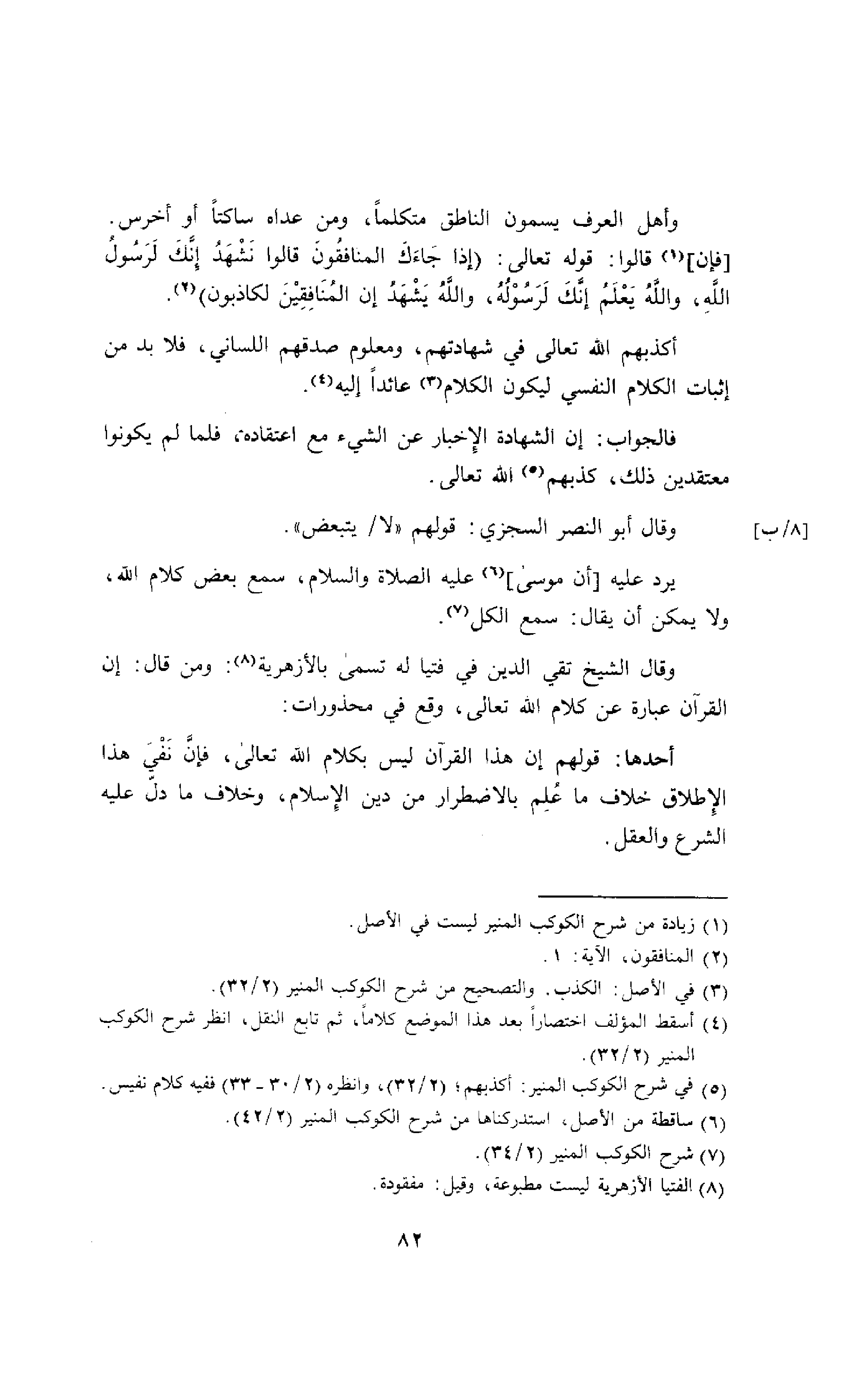 4 أسقط المؤلف اخنصارًا بعد هذا الموضوع كلامًا، ثم تابع النقل، انظر شرح الكوكب المنير: "32/2".