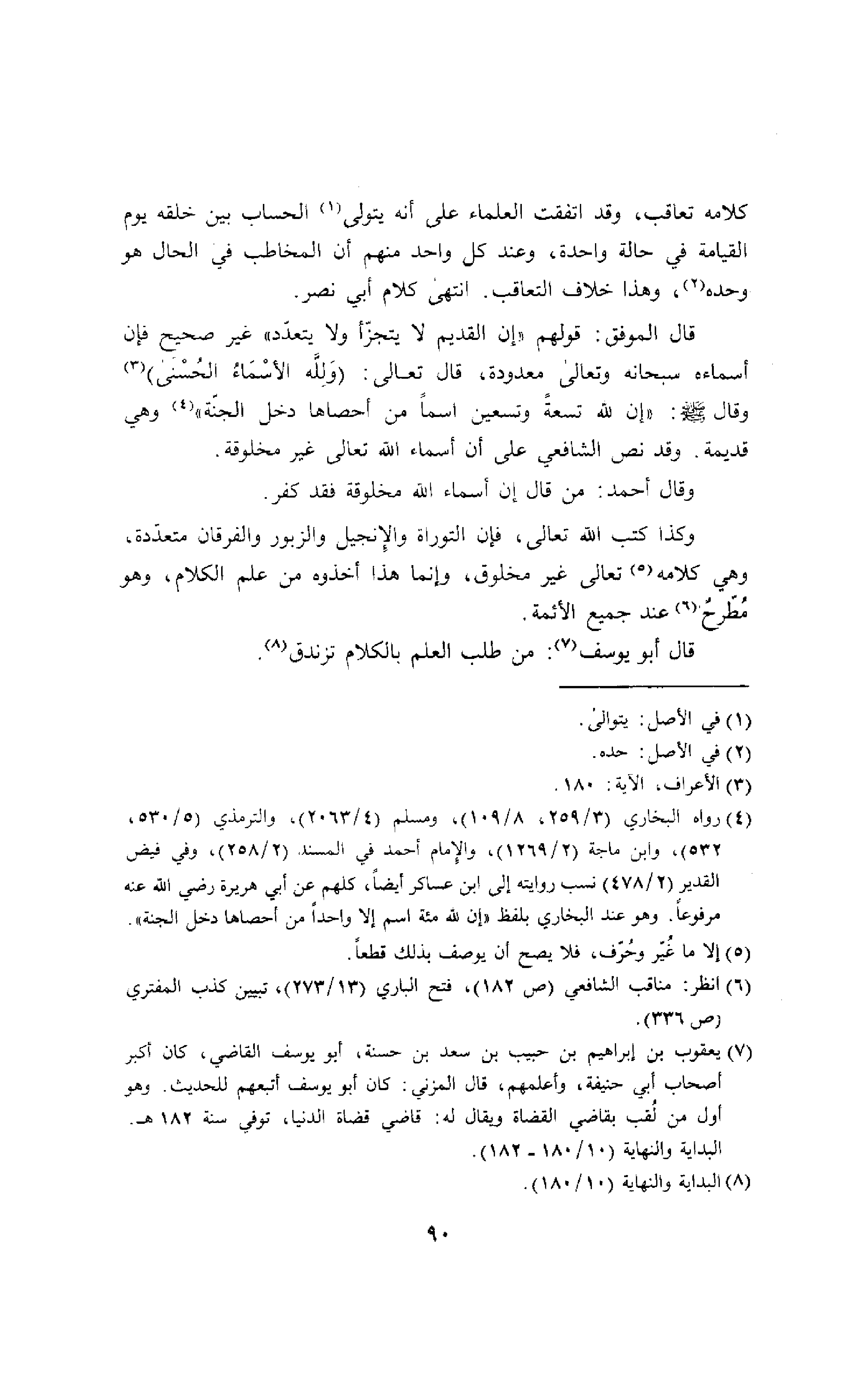 نص الشافعي وأحمد على قدم أسماء الله تعالى.