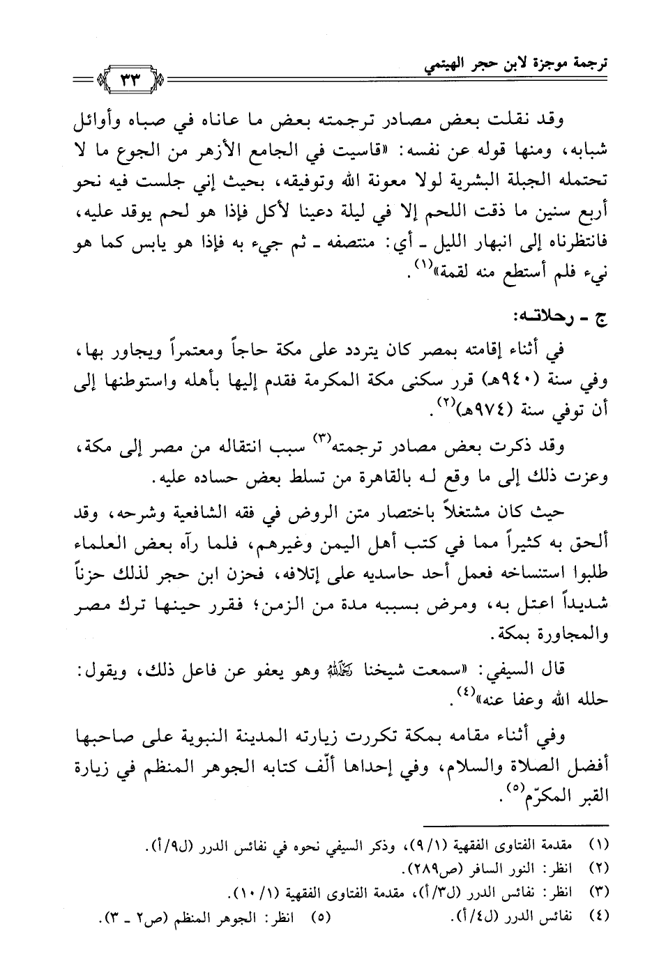 (¬٣) انظر: نفائس الدرر (ل ٣/ أ)، مقدمة الفتاوى الفقهية (١/ ١٠).