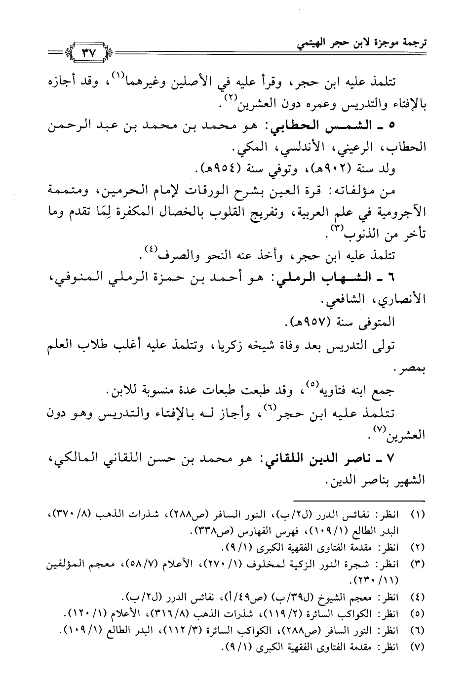 (¬٧) انظر: مقدمة الفتاوى الفقهية الكبرى (١/ ٩).