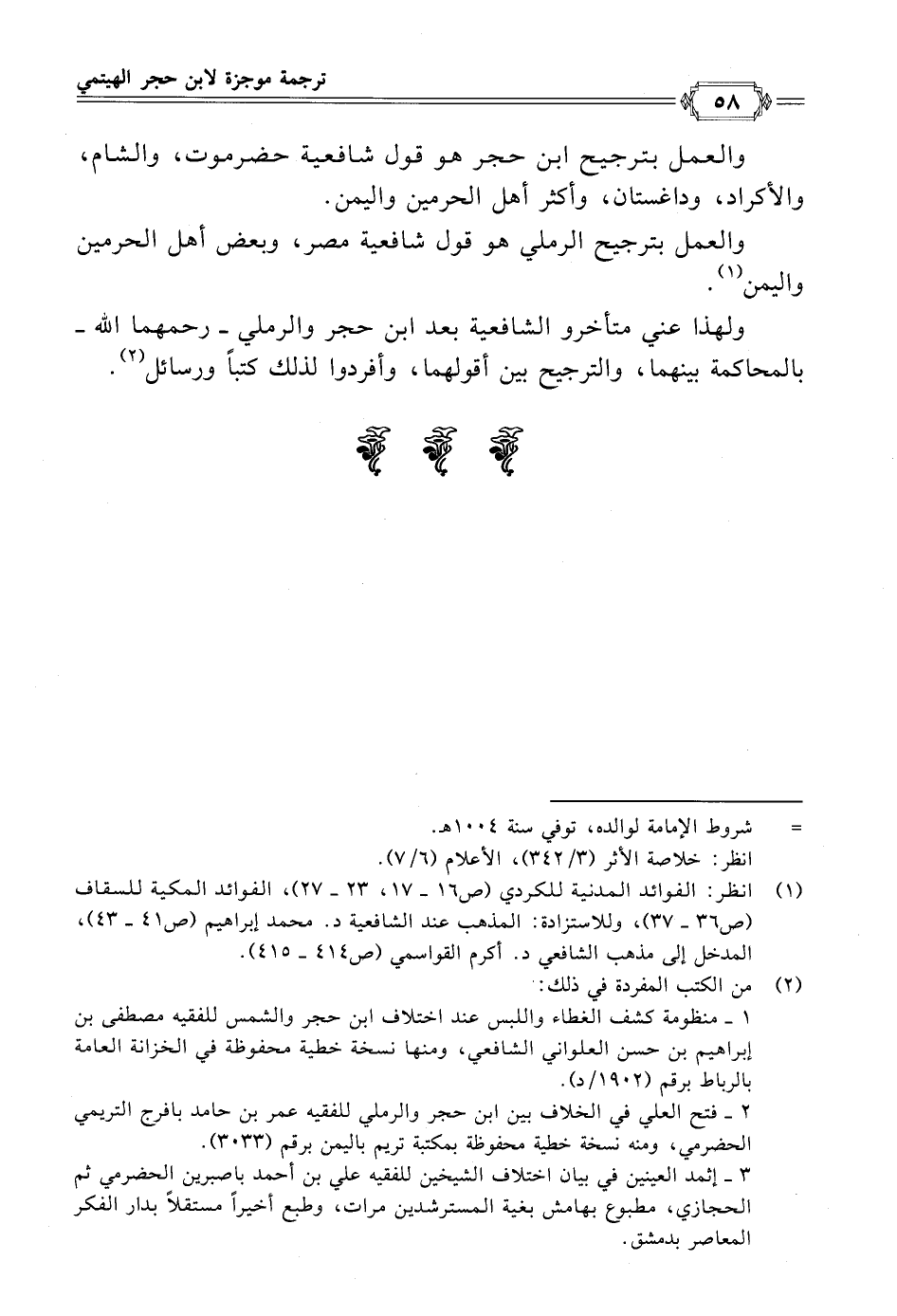 ولهذا عني متأخرو الشافعية بعد ابن حجر والرملي - رحمهما الله - بالمحاكمة بينهما، والترجيح بين أقولهما، وأفردوا لذلك كتبًا ورسائل (¬٢).