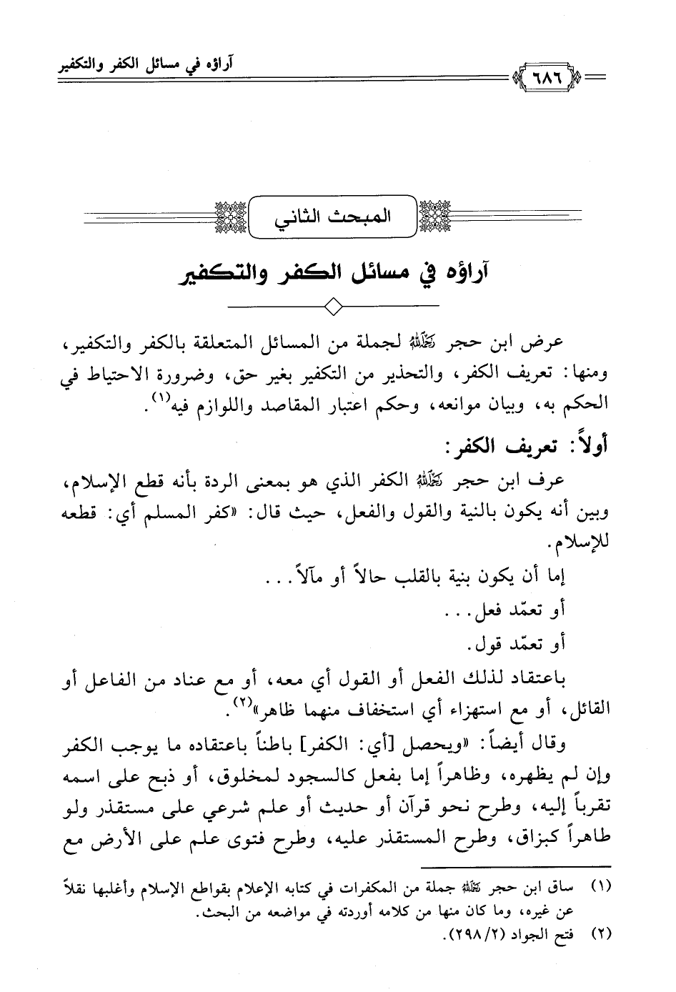 المبحث الثاني آراؤه في مسائل الكفر والتكفير