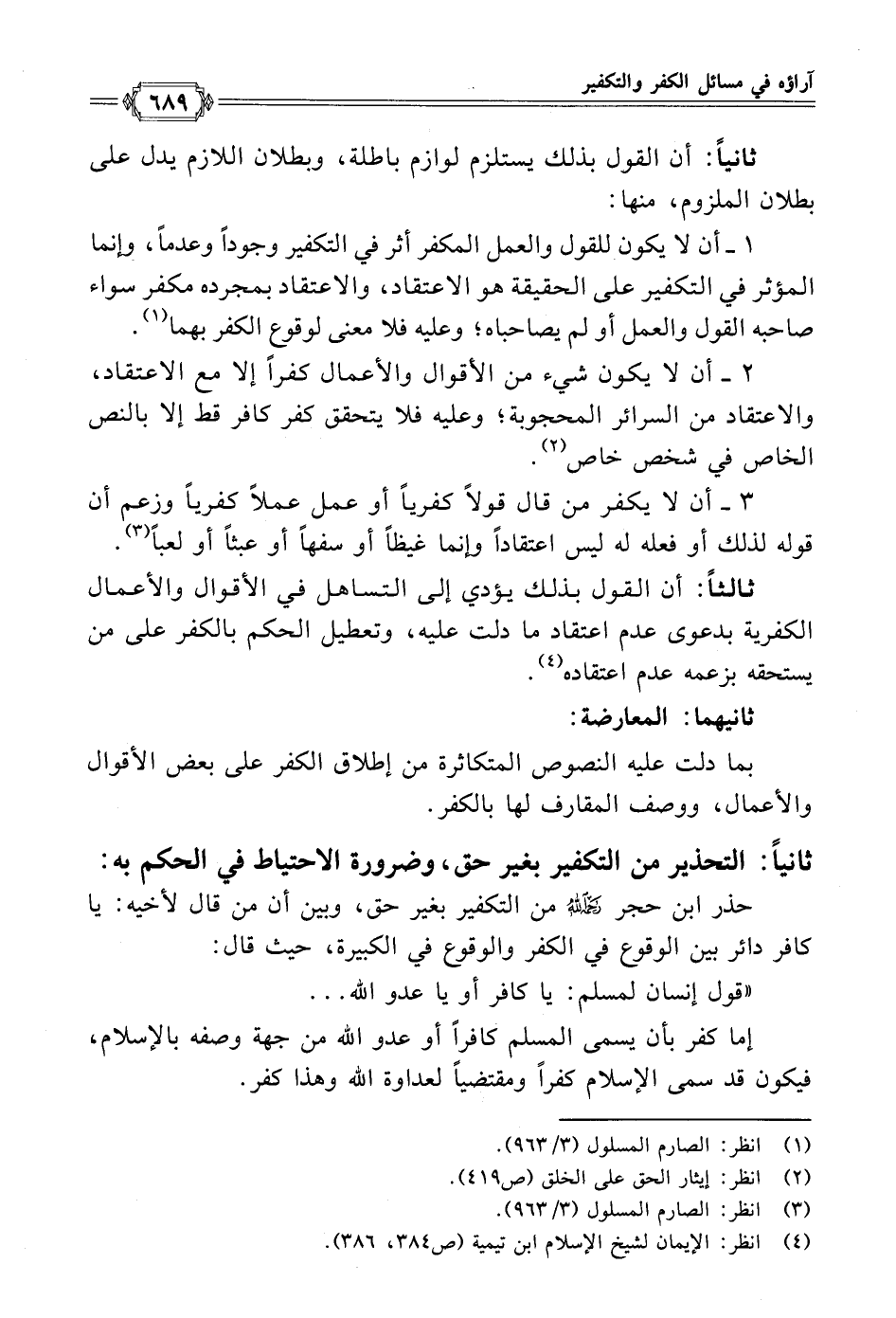(¬٤) انظر: الإيمان لشيخ الإسلام ابن تيمية (ص ٣٨٤، ٣٨٦).