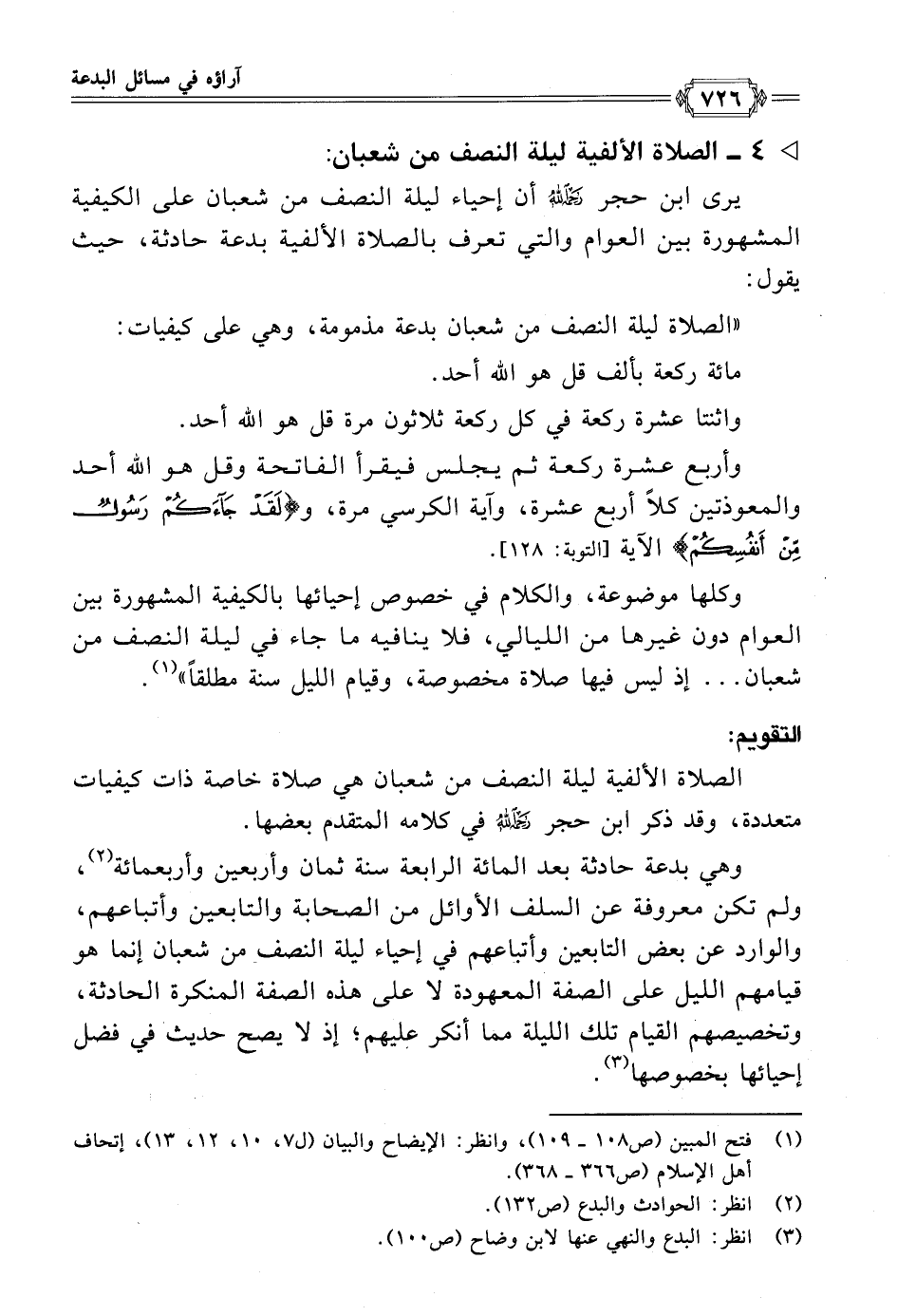 ٤ - الصلاة الألفية ليلة النصف من شعبان:
