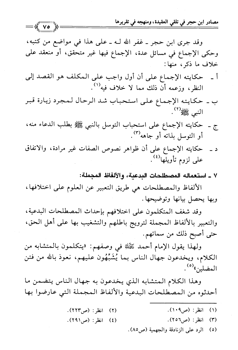د - حكايته الإجماع على أن ظواهر نصوص الصفات غير مرادة، والاتفاق على لزوم تأويلها (¬٤).