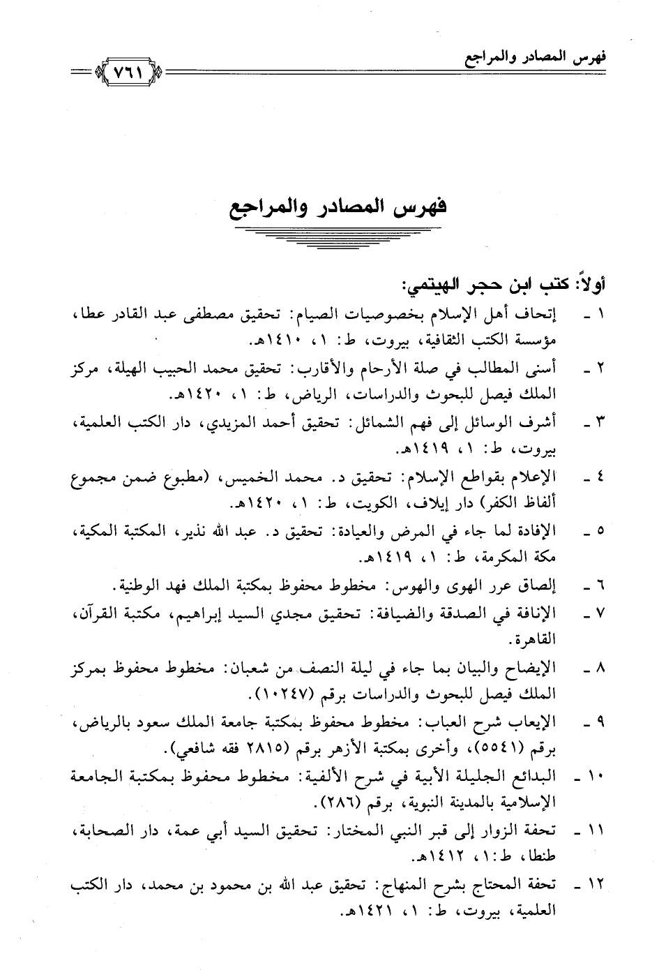 ١٢ - تحفة المحتاج بشرح المنهاج: تحقيق عبد الله بن محمود بن محمد، دار الكتب العلمية، بيروت، ط: ١، ١٤٢١ هـ.