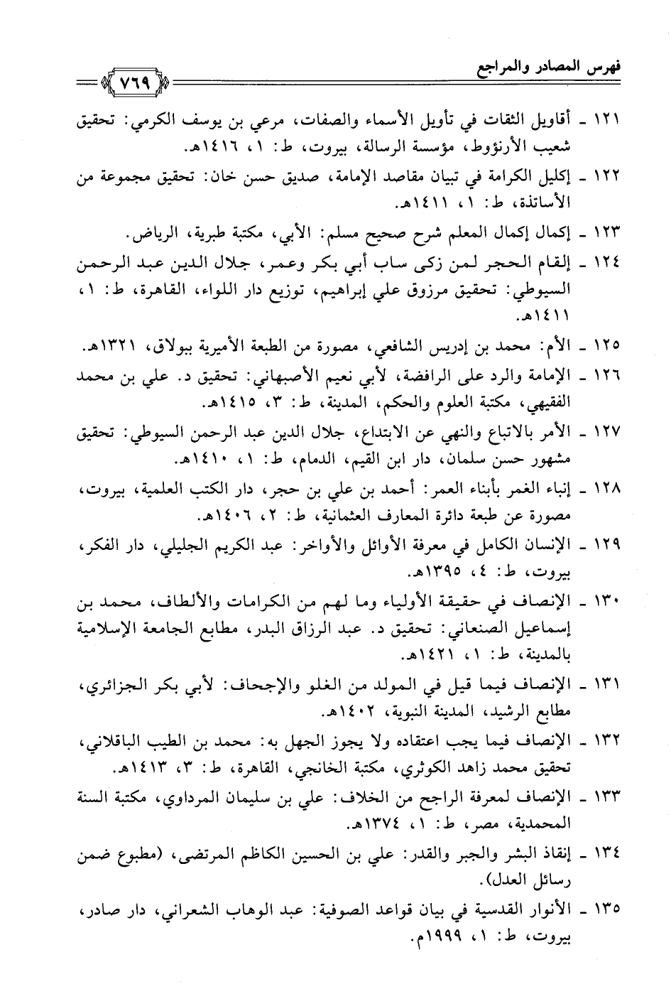 ١٣٢ - الإنصاف فيما يجب اعتقاده ولا يجوز الجهل به: محمد بن الطيب الباقلاني، تحقيق محمد زاهد الكوثري، مكتبة الخانجي، القاهرة، ط: ٣، ١٤١٣ هـ.