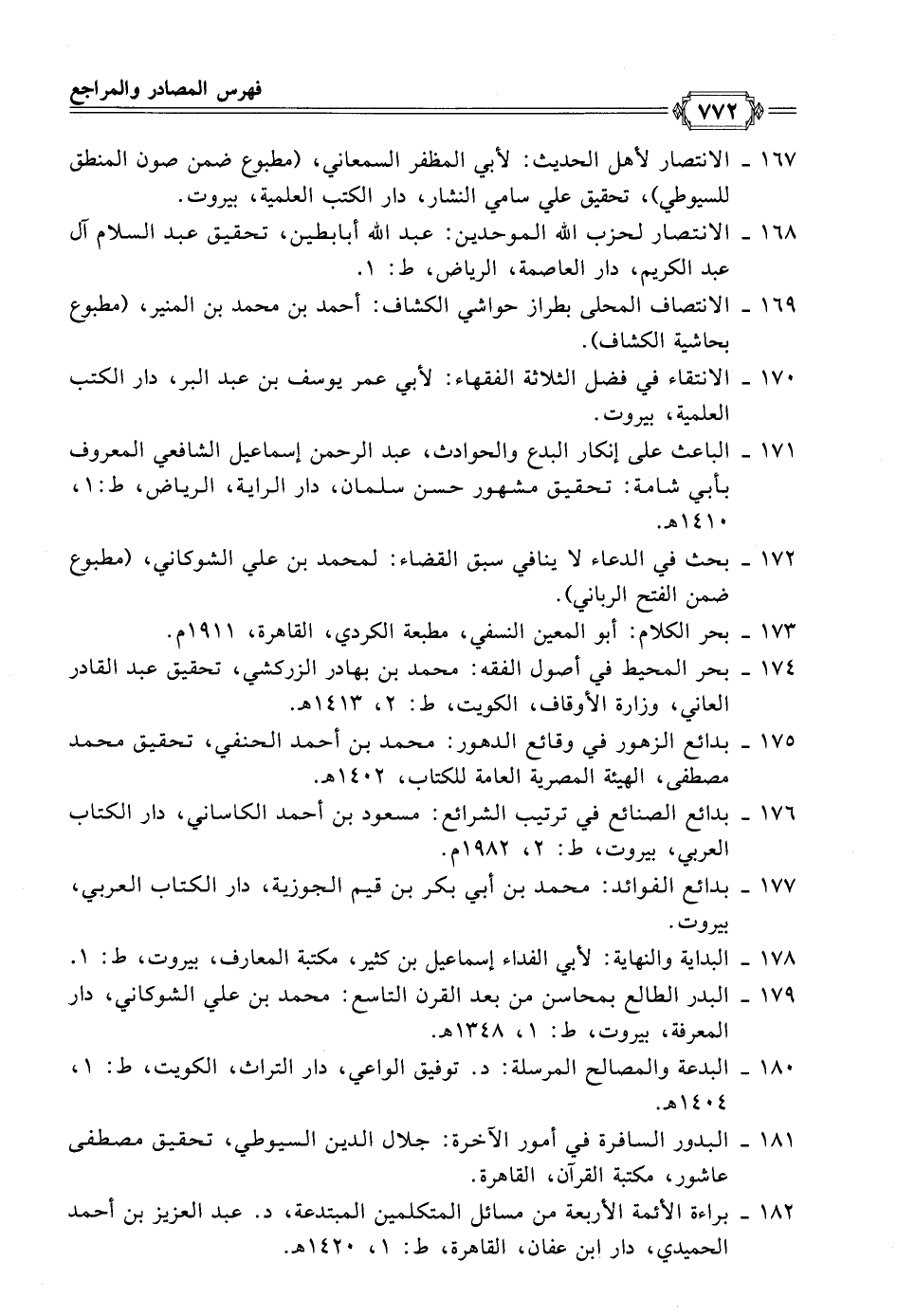 ١٧٧ - بدائع الفوائد: محمد بن أبي بكر بن قيم الجوزية، دار الكتاب العربي، بيروت.