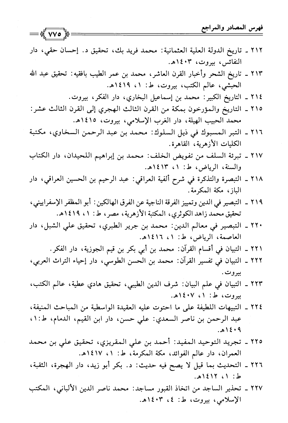 ٢٢٥ - تجريد التوحيد المفيد: أحمد بن علي المقريزي، تحقيق علي بن محمد العمران، دار عالم الفوائد، مكة المكرمة، ط: ١، ١٤١٧ هـ.