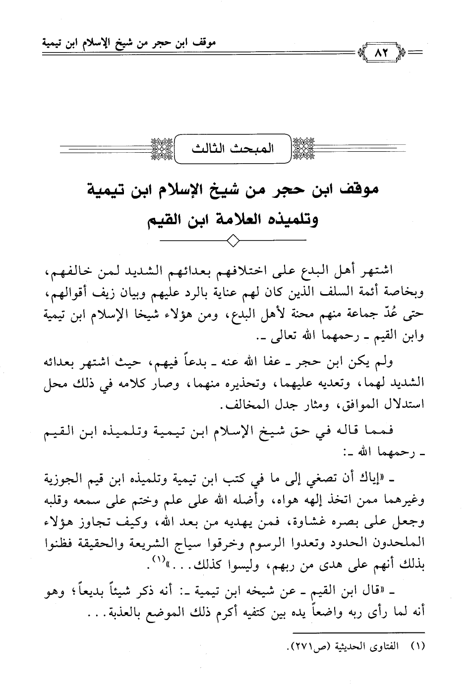 المبحث الثالث موقف ابن حجر من شيخ الإسلام ابن تيمية وتلميذه العلامة ابن القيم