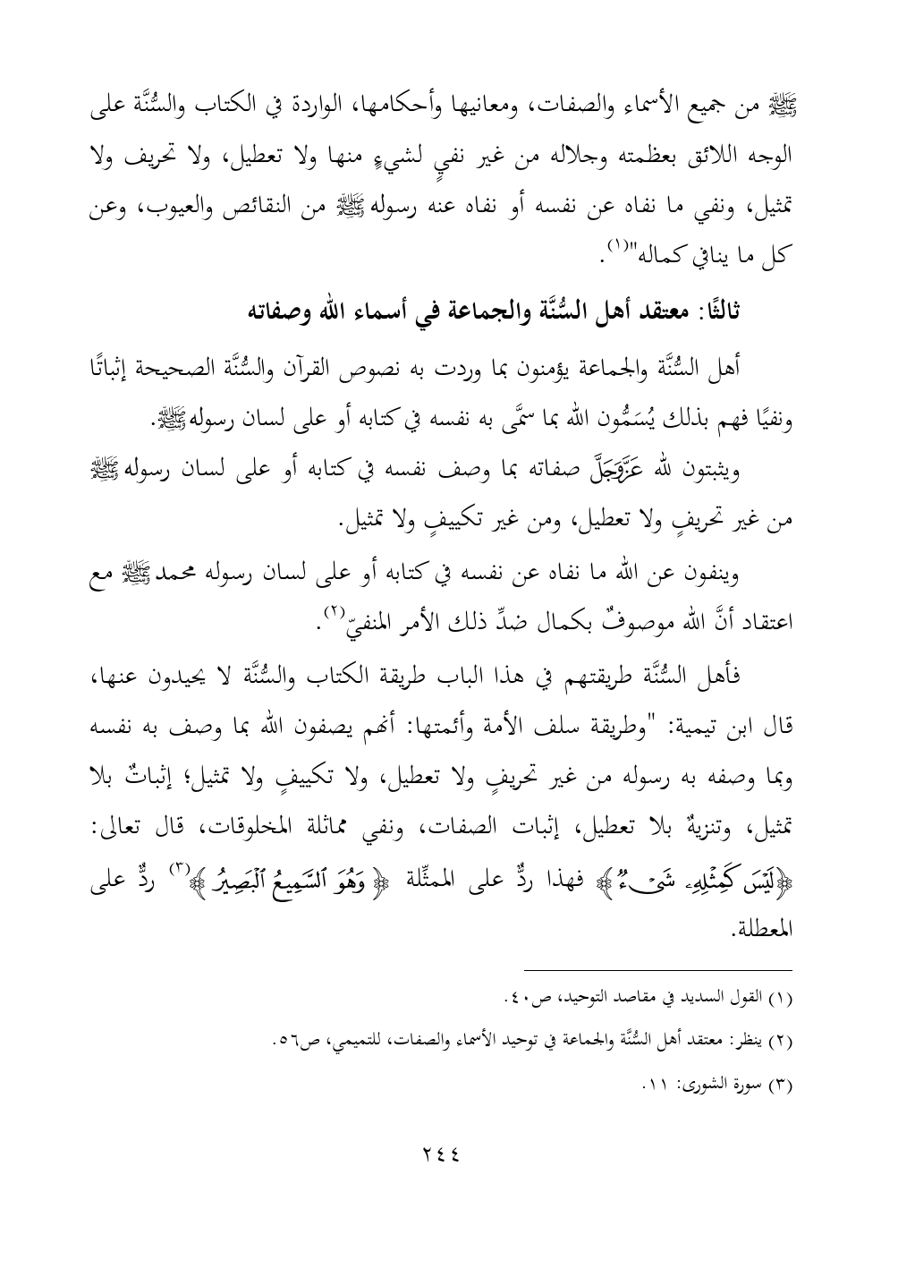 ثالثًا: معتقد أهل السُّنَّة والجماعة في أسماء الله وصفاته